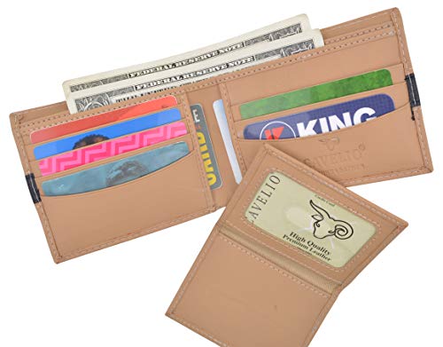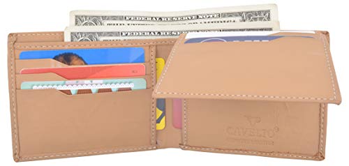 Brand: CavelioColor: TanFeatures: Men's Bifold Genuine Leather Wallet 8 Credit Card Slots Removable ID Card...