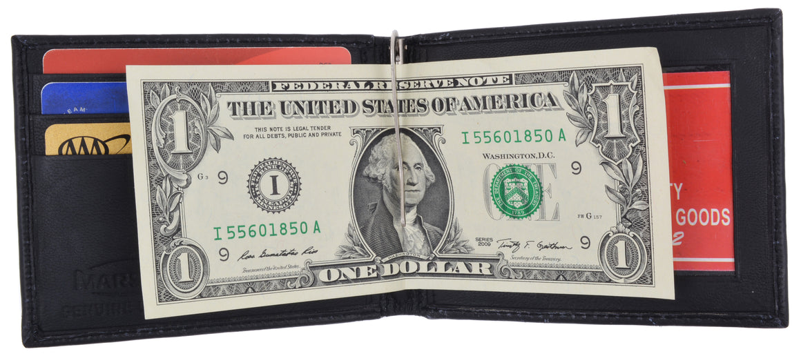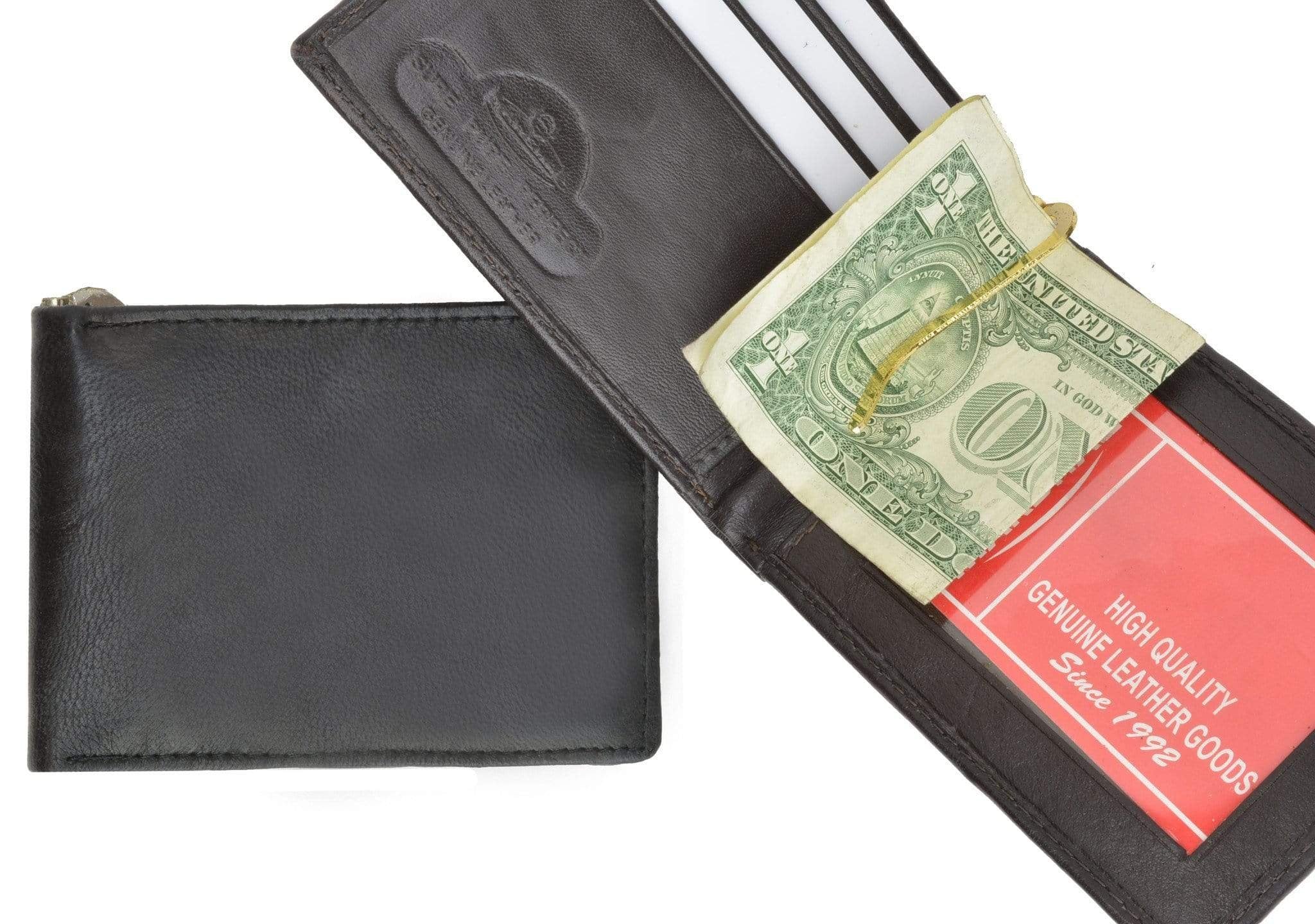 Material: Genuine Leather Bi-foldSize: 3.25" x 4" (folded) approxCredit Card Slots: 6+Currency Pocket: Money ClipOther...