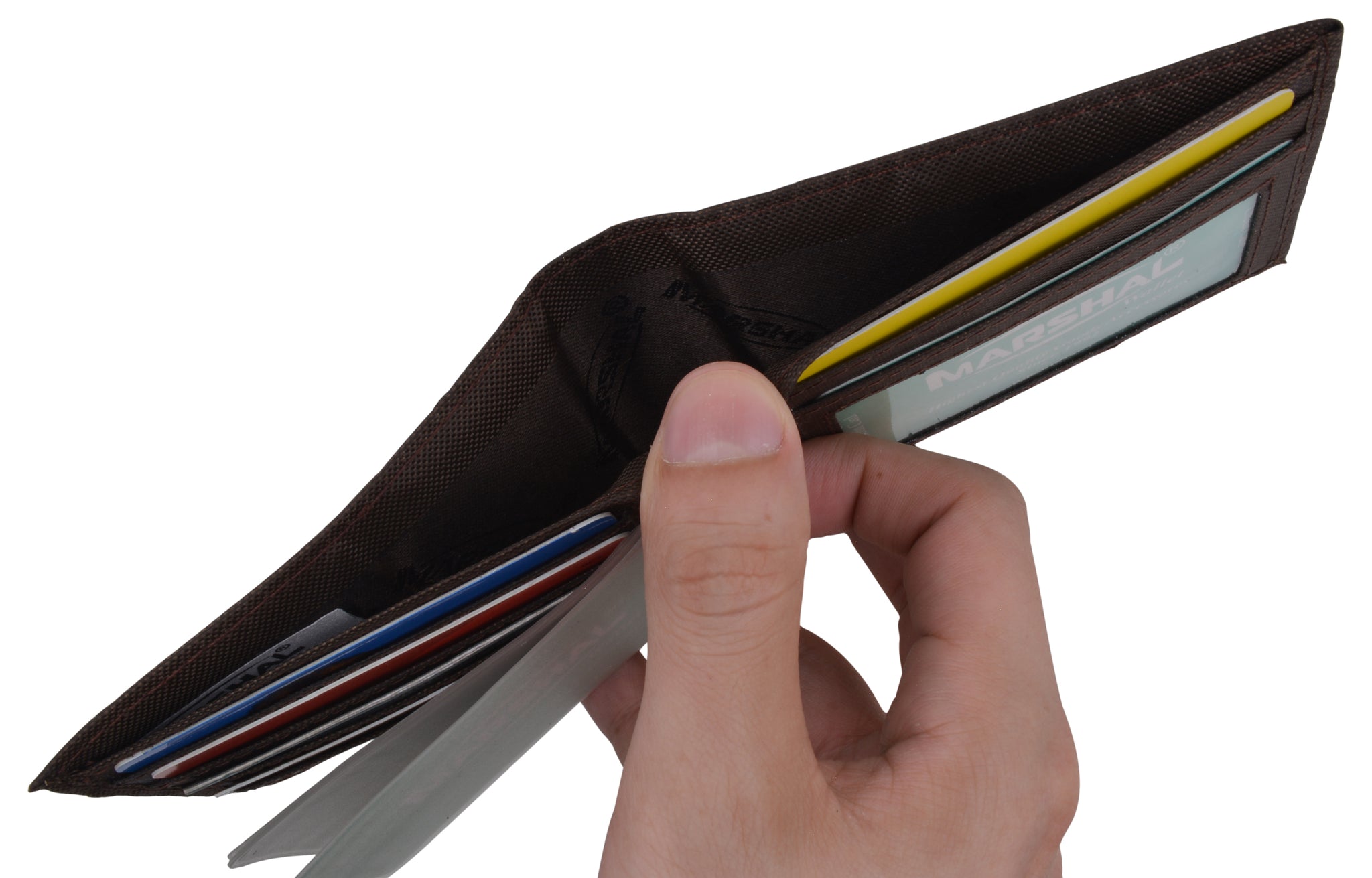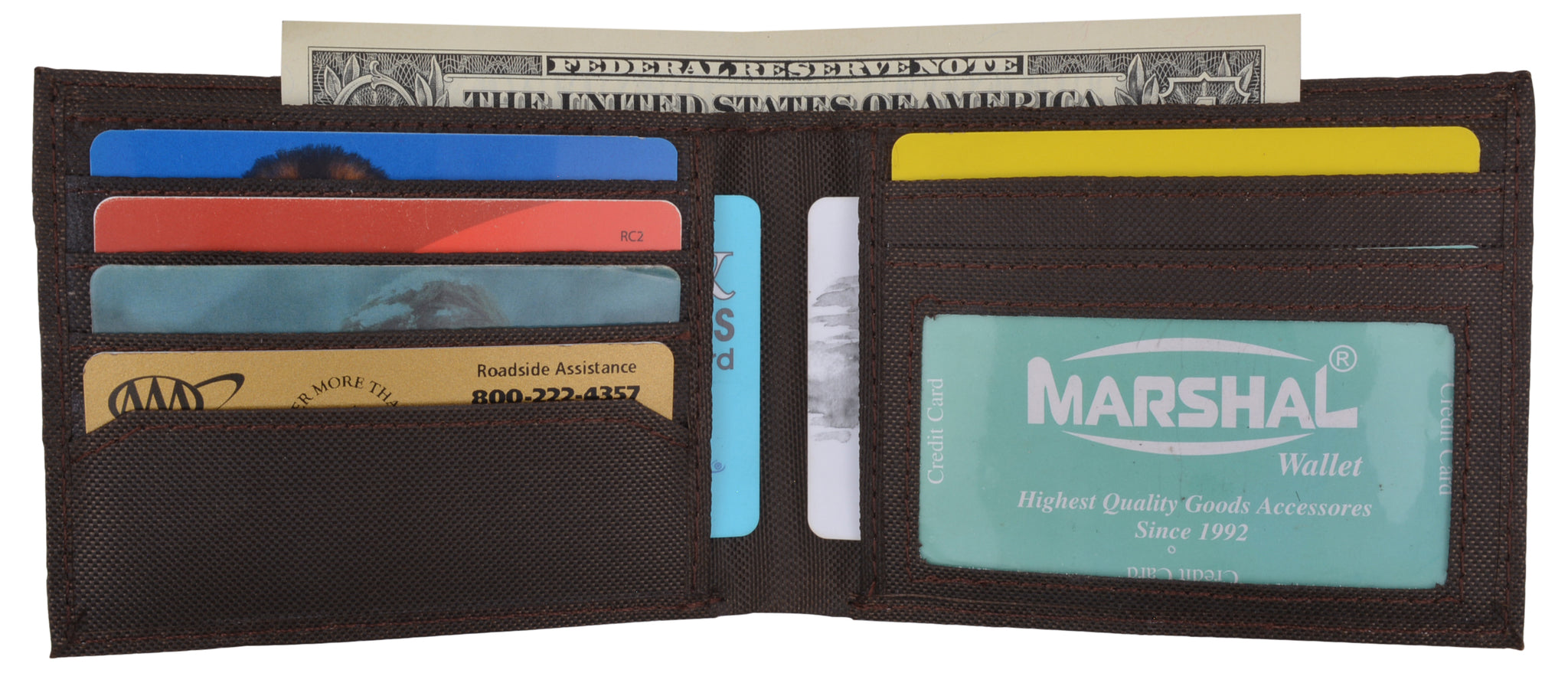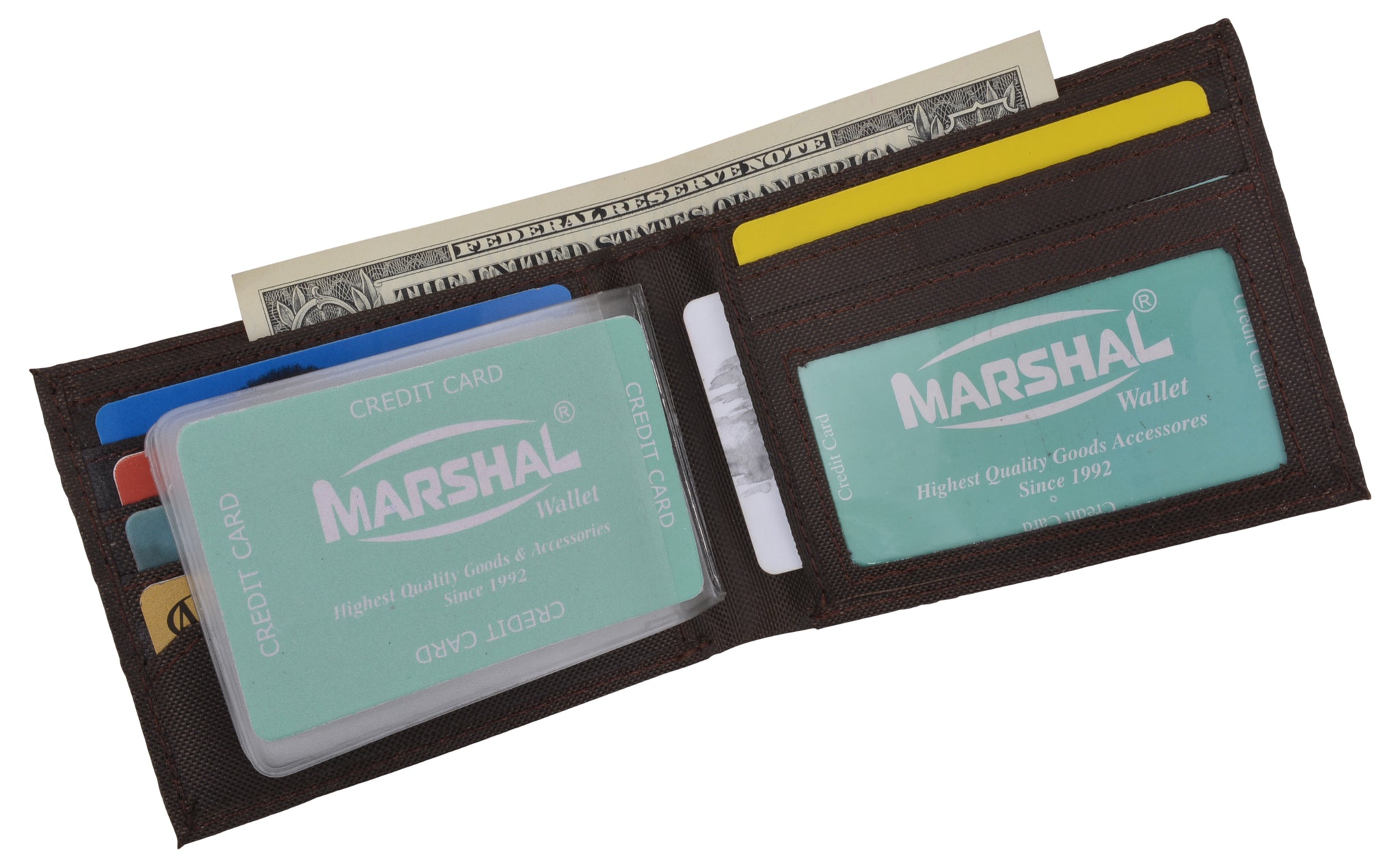 Brand: MarshalFeatures: Slim Nylon Bifold Wallet 5+ Credit Card Slots, ID Window Bill Compartment, Plastic...