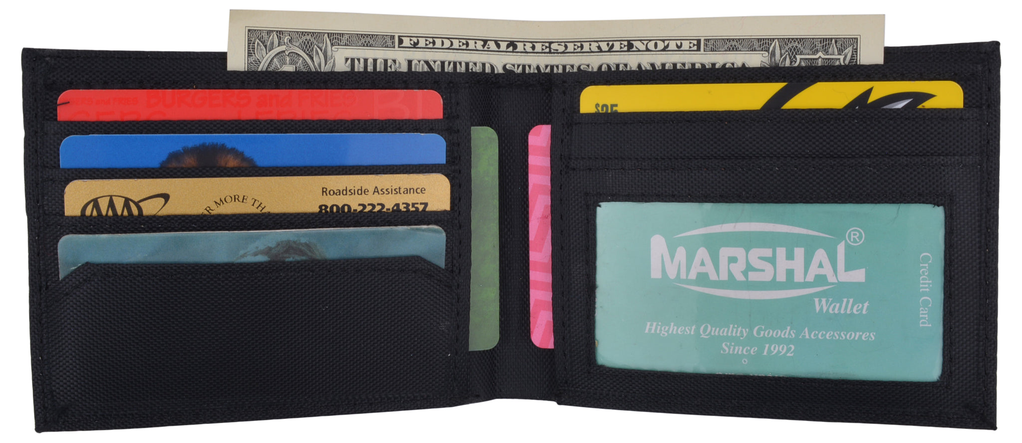 Brand: MarshalColor: BlackFeatures: Slim Nylon Trifold Wallet 8+ Credit Card Slots, ID Window Bill Compartment,...