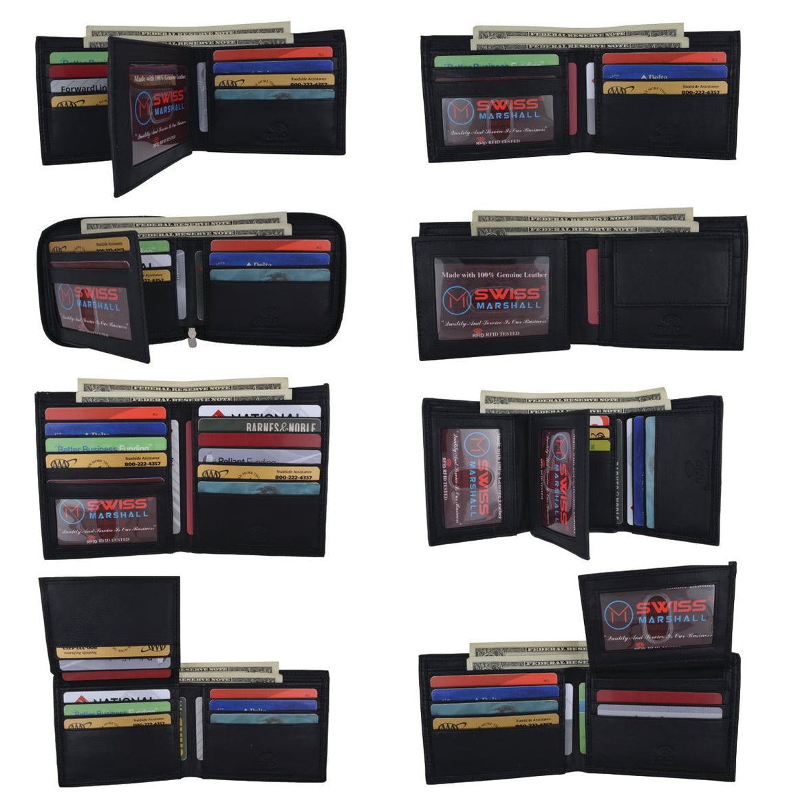 Brand: Swiss MarshallDetails: Swiss Marshall RFID Premium Leather Wallets 6 Bifold & 6 Trifold Wallets...