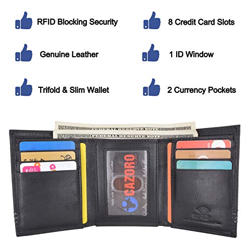 Brand: CAZOROFeatures: Trifold closure Safety and Privacy: Our wallets are created using cutting-edge RFID technology...