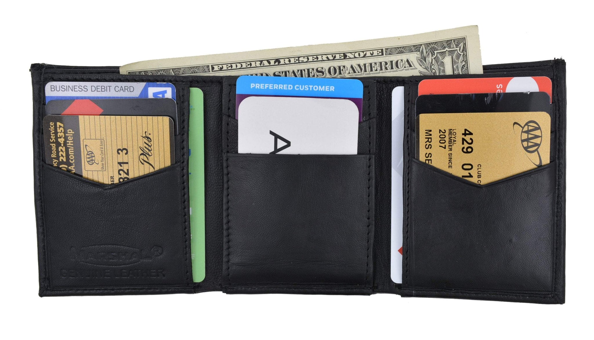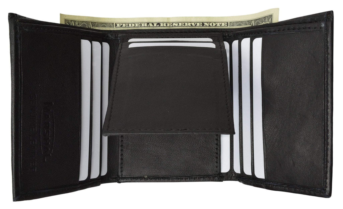 Material: Premium High Quality LeatherTrifold Wallet4 Credit Card Slots 3 Extra Pockets for Receipts/Cards1 Outside ID...