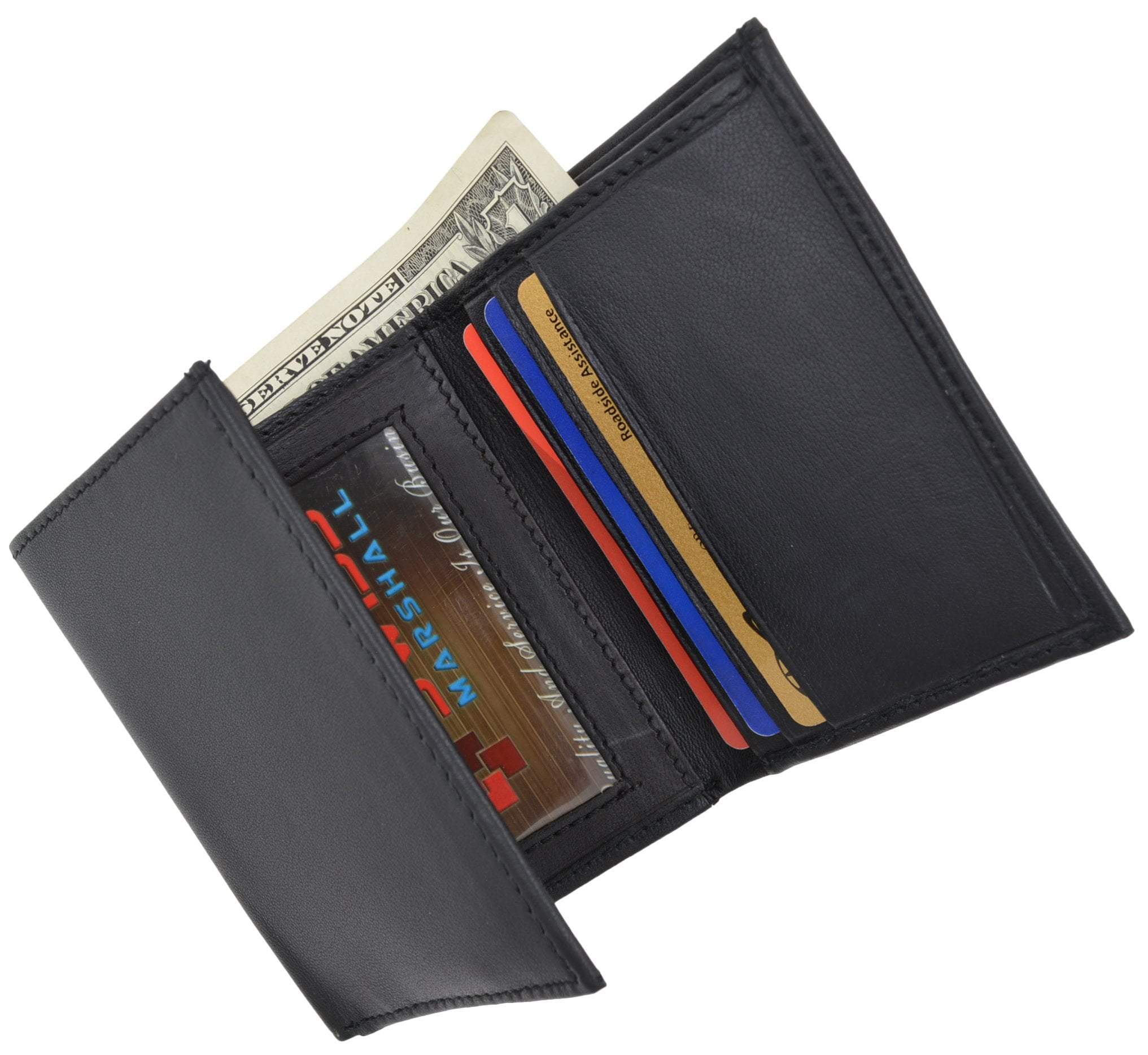 Brand: MarshalColor: BlackFeatures: Slim Nylon Trifold Wallet 8+ Credit Card Slots, ID Window Bill Compartment,...