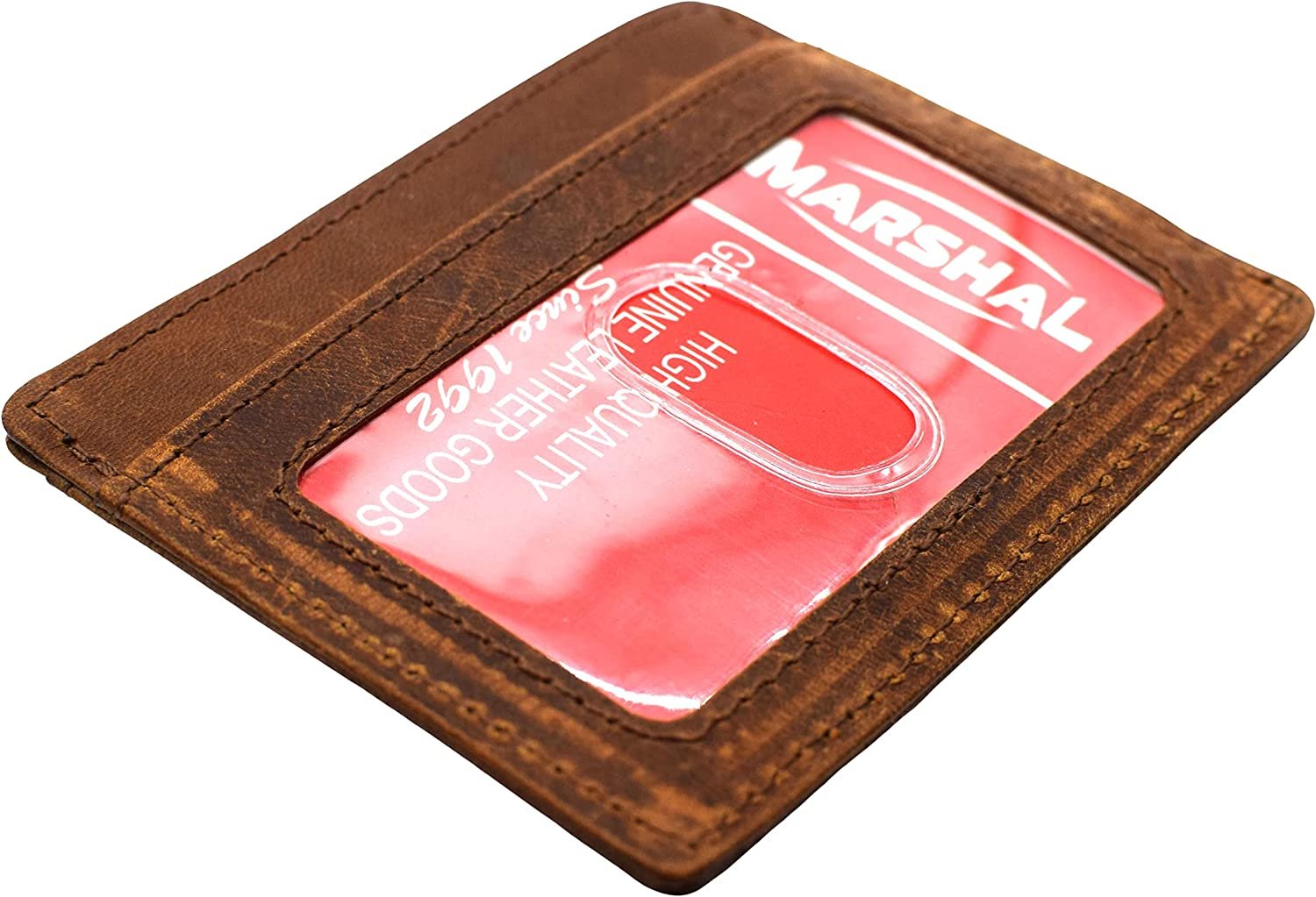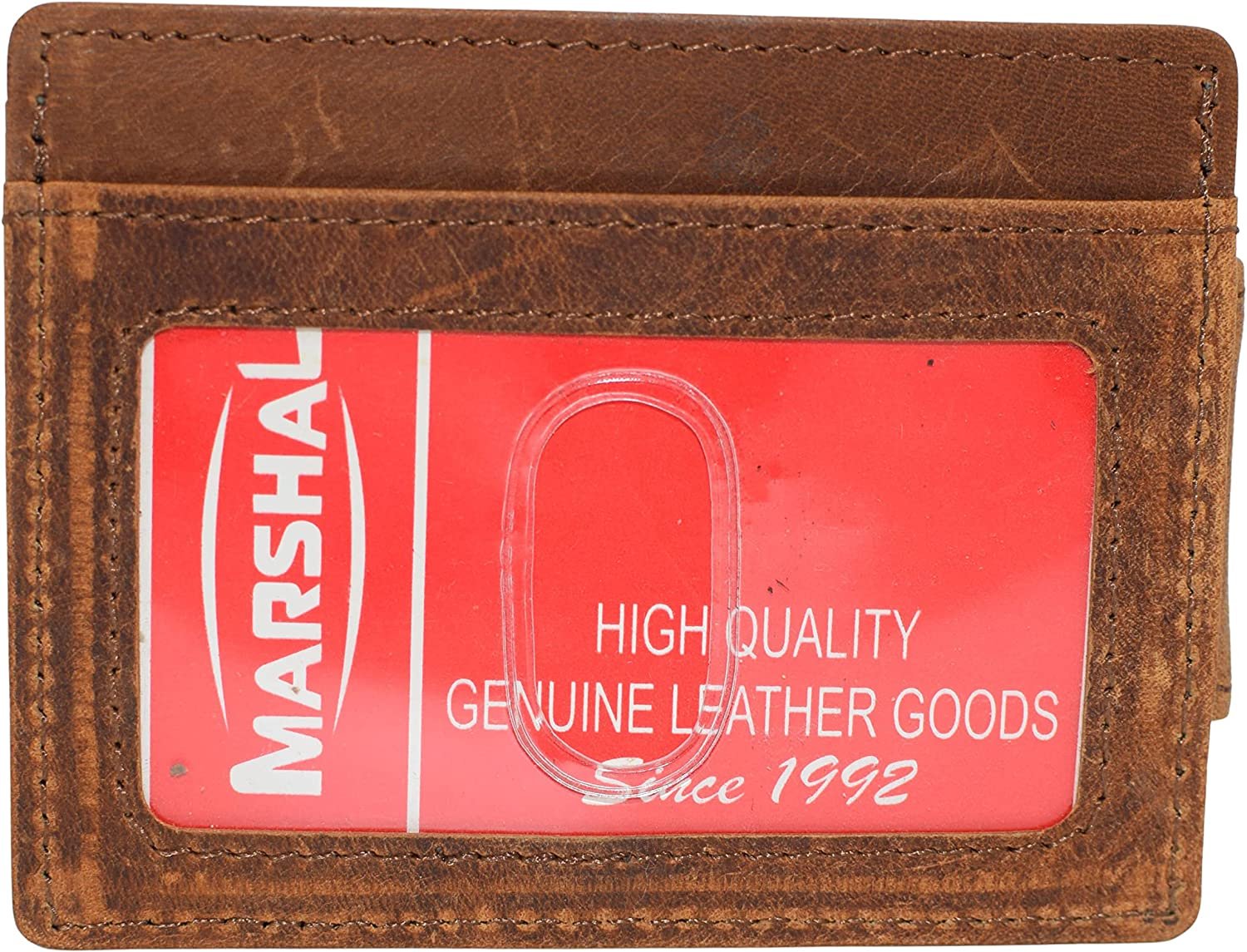 Marshal bifold leather rfid blocking wallet for men & women | genuine leather holder with 19 slots, 2 bill compartments & id window for credit/debit cards, money & more (black)