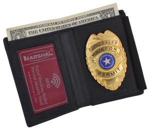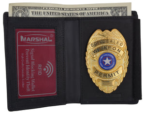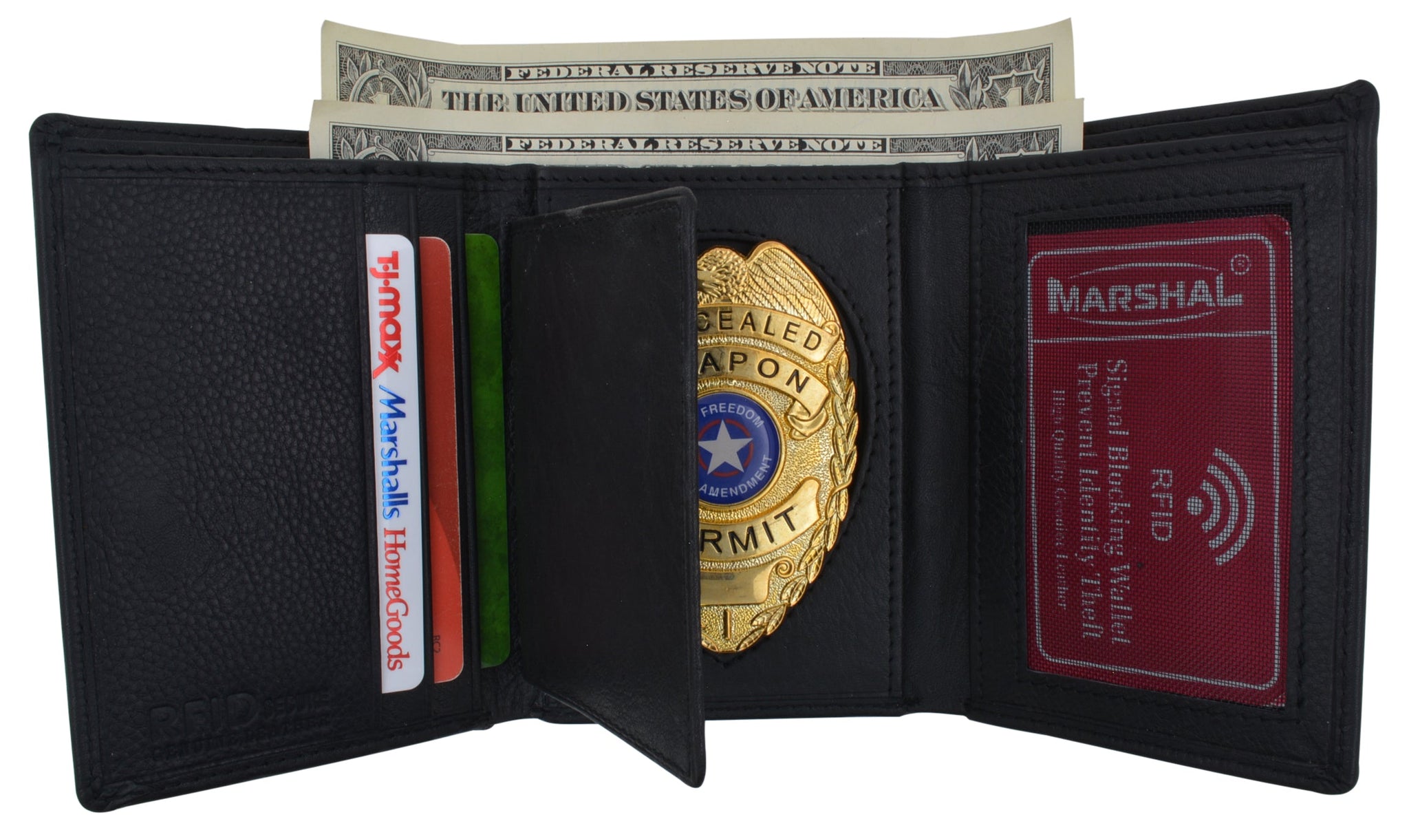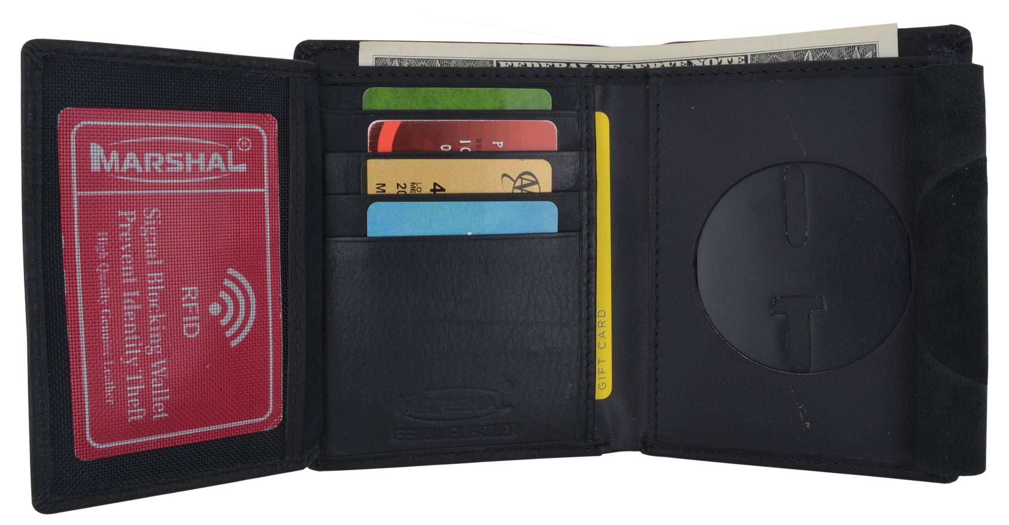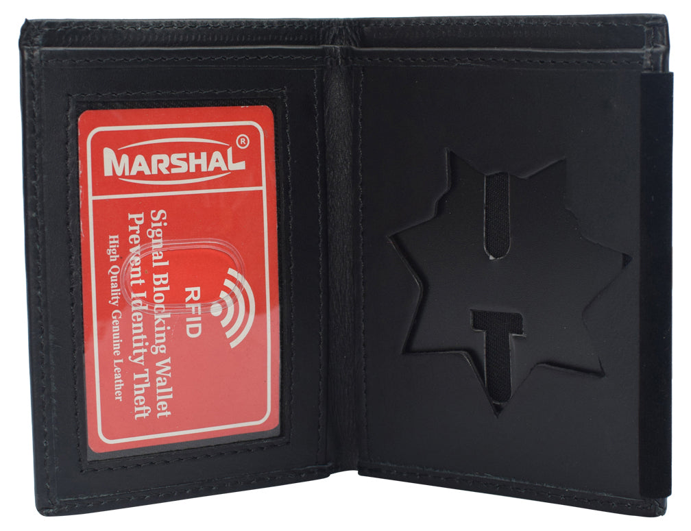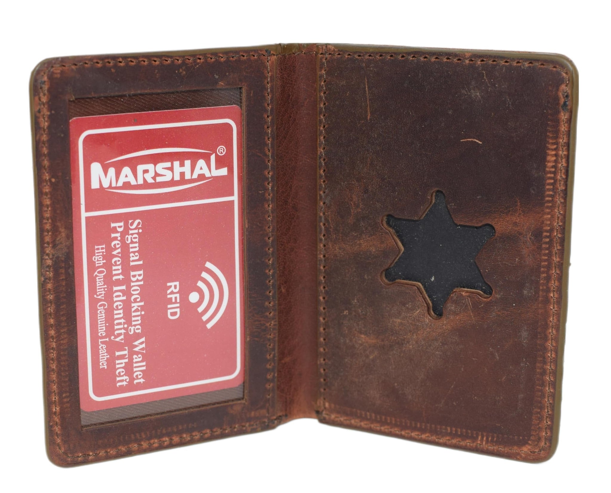 Brand: Marshal Features: High Quality Genuine Leather 1 ID/Driver's License Window Family Member Mini Badge...