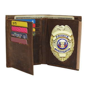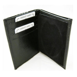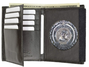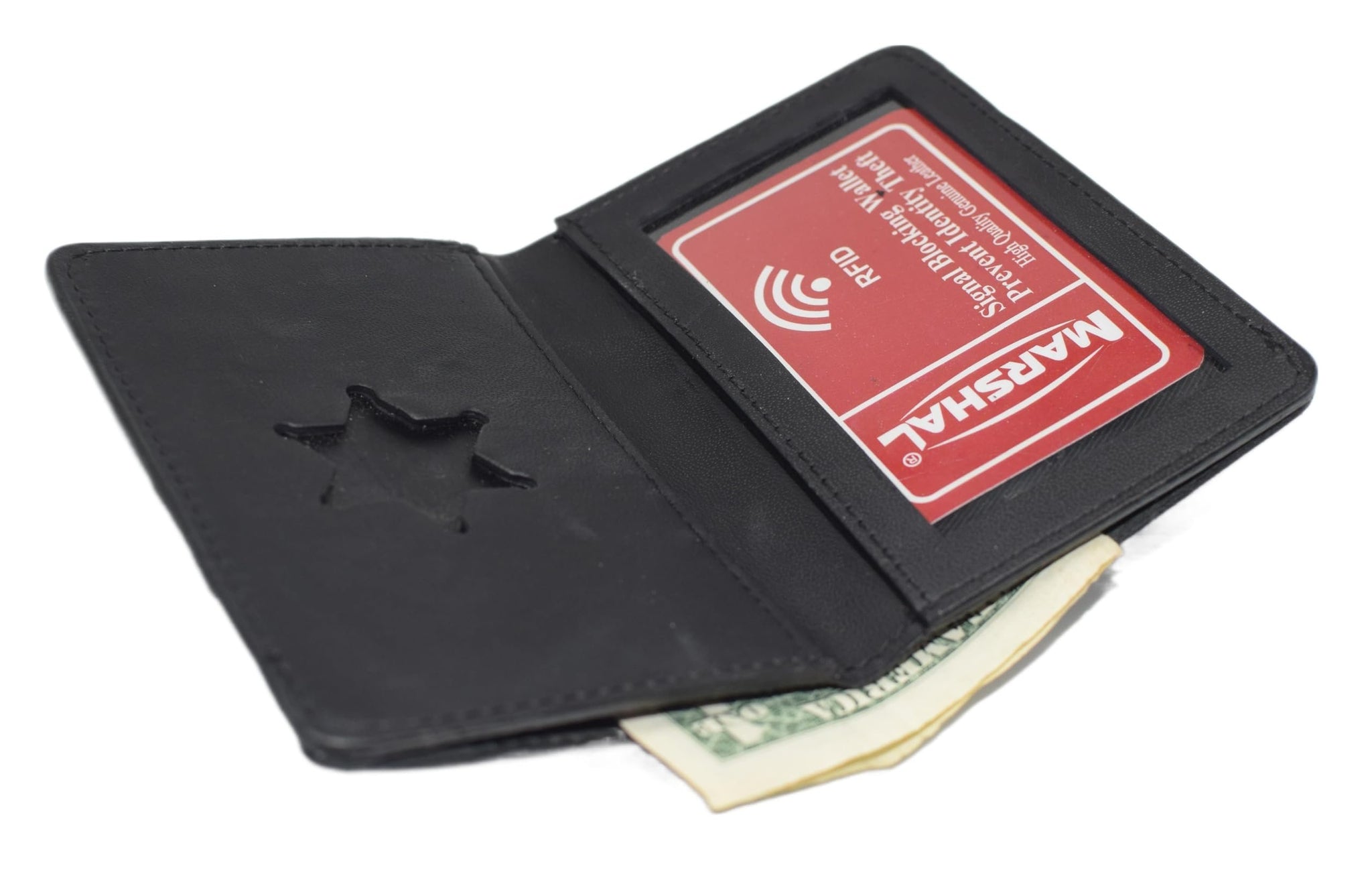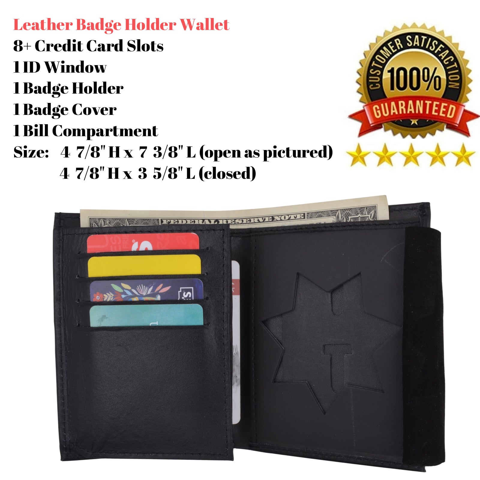 Product details Bifold Badge Holder Wallet RFID Protected Black Full Grain Genuine Leather 4.75" H...