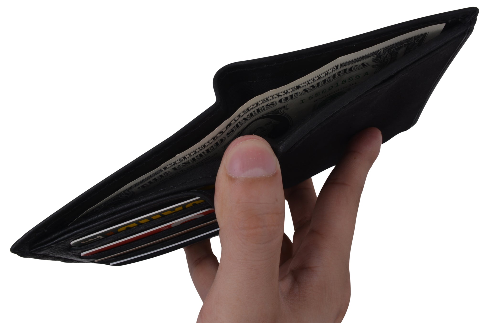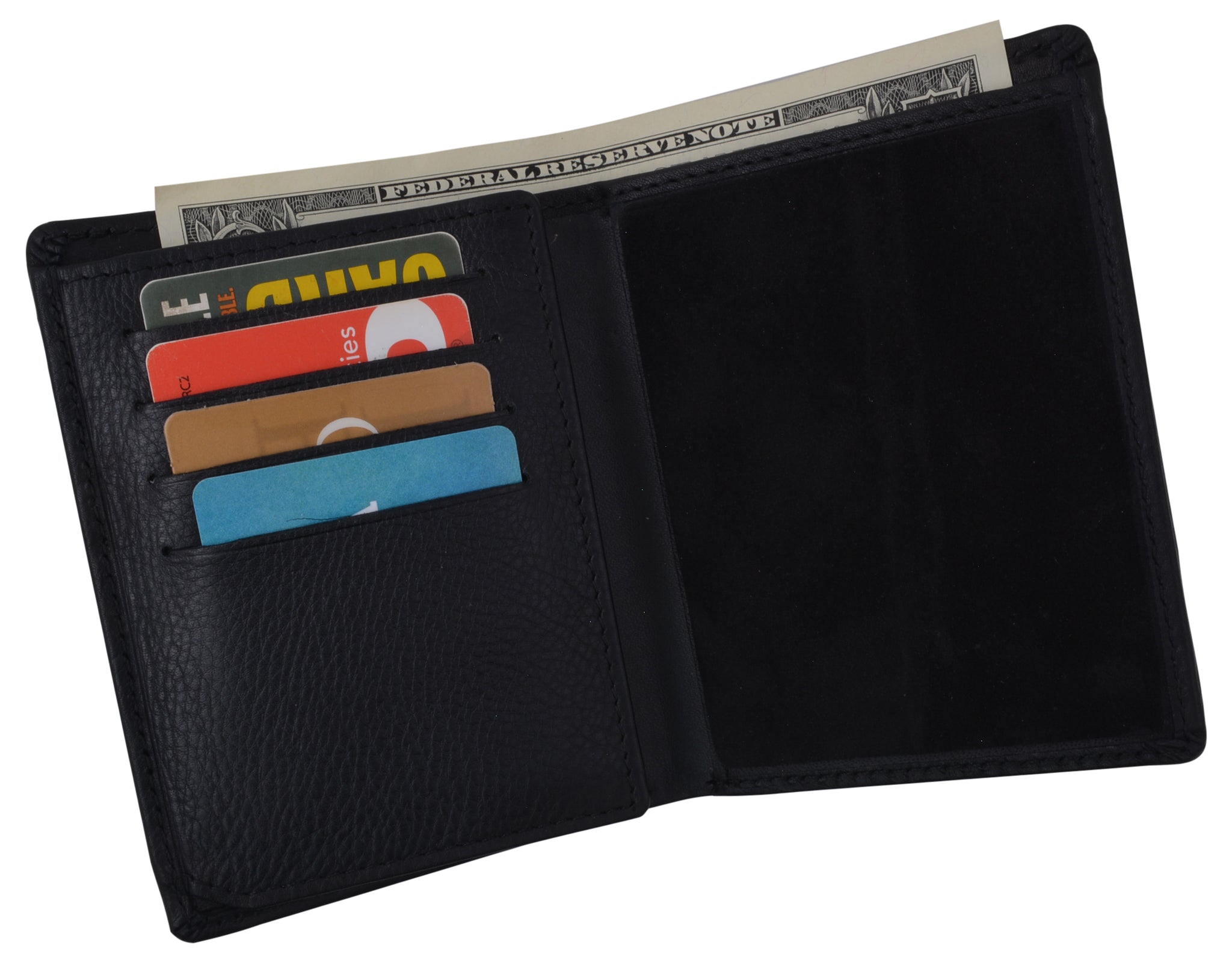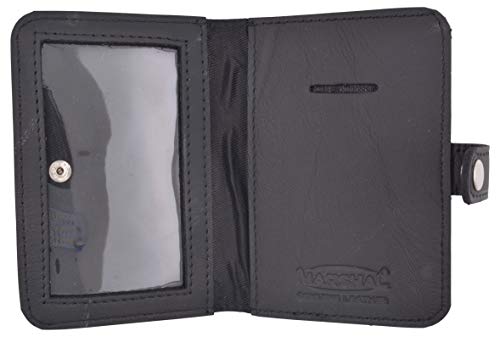 Brand: MarshalDetails: Size: Approx. 4.5" X 3.5/8", when closed.Material: Genuine LeatherColor: BlackCard Slots: 3 Card slotsMoney Pockets:...
