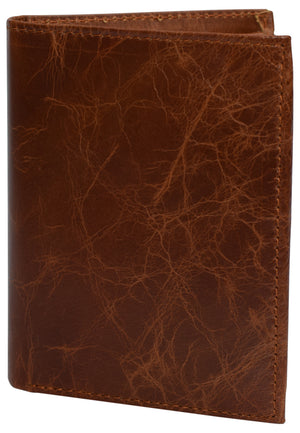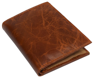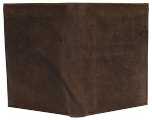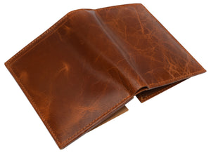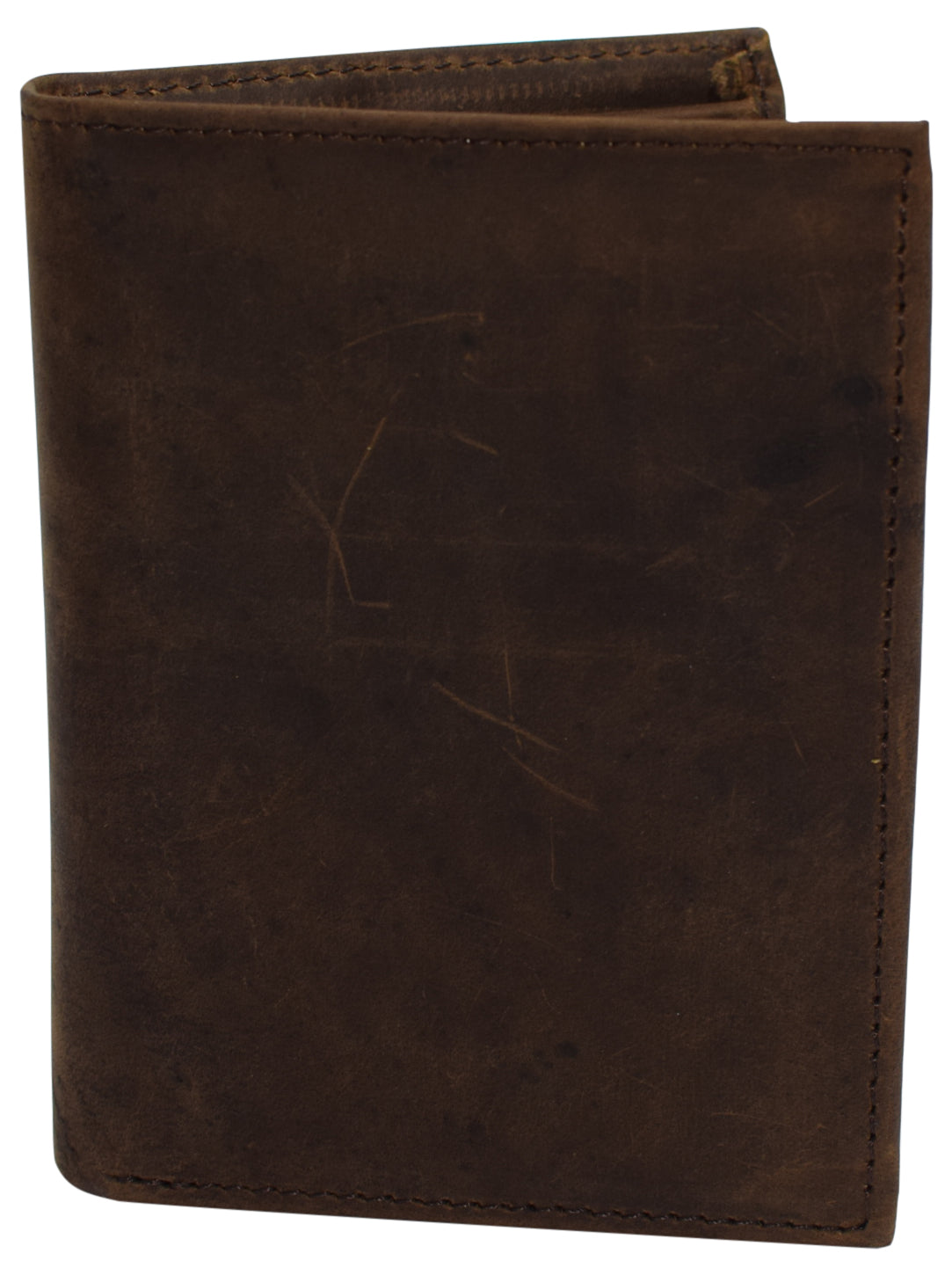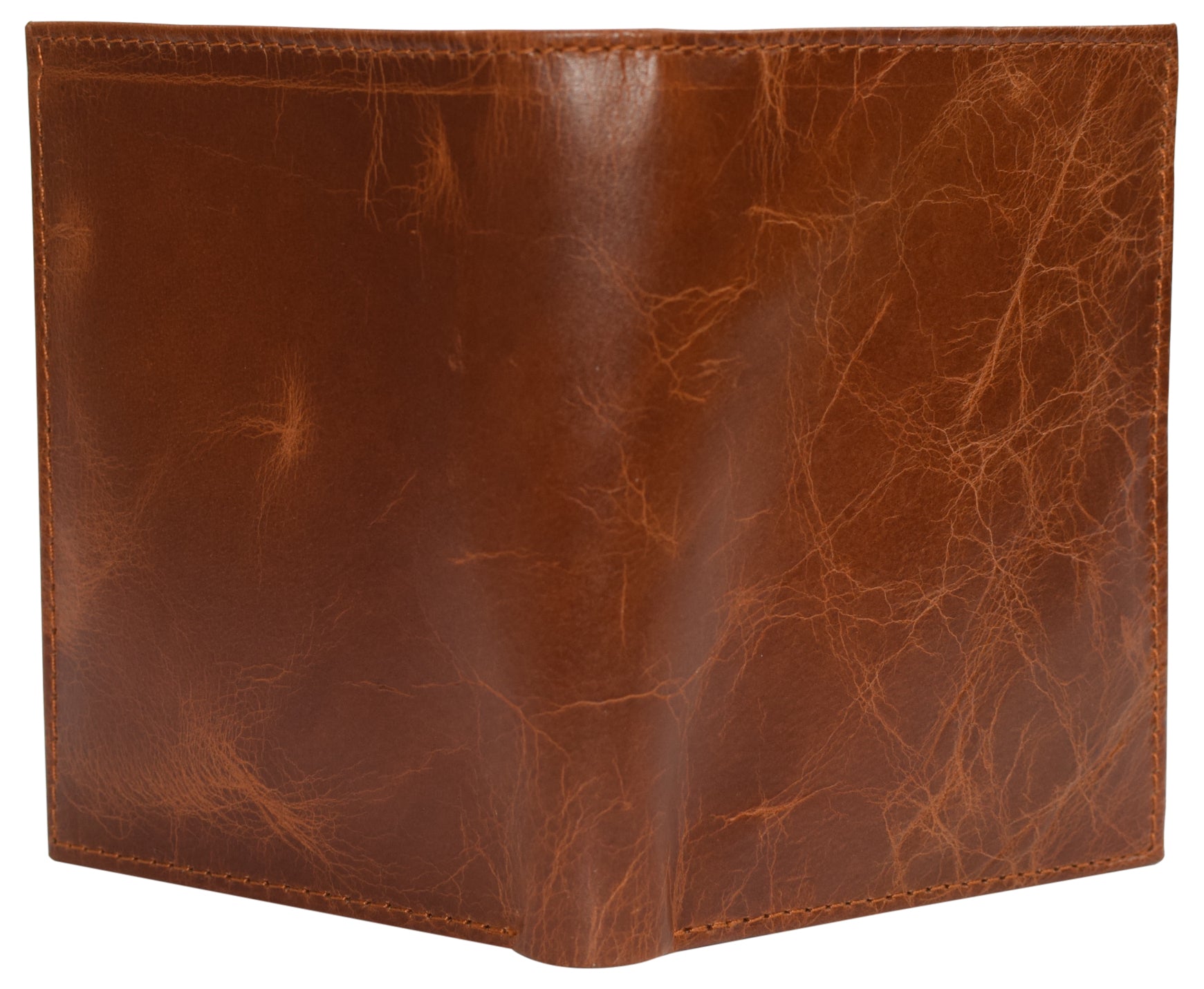 Material: Genuine Leather Bi-fold Size: 7.5½ x 4.5½ Credit Card Slots: 8+ I.D. Window: Yes...