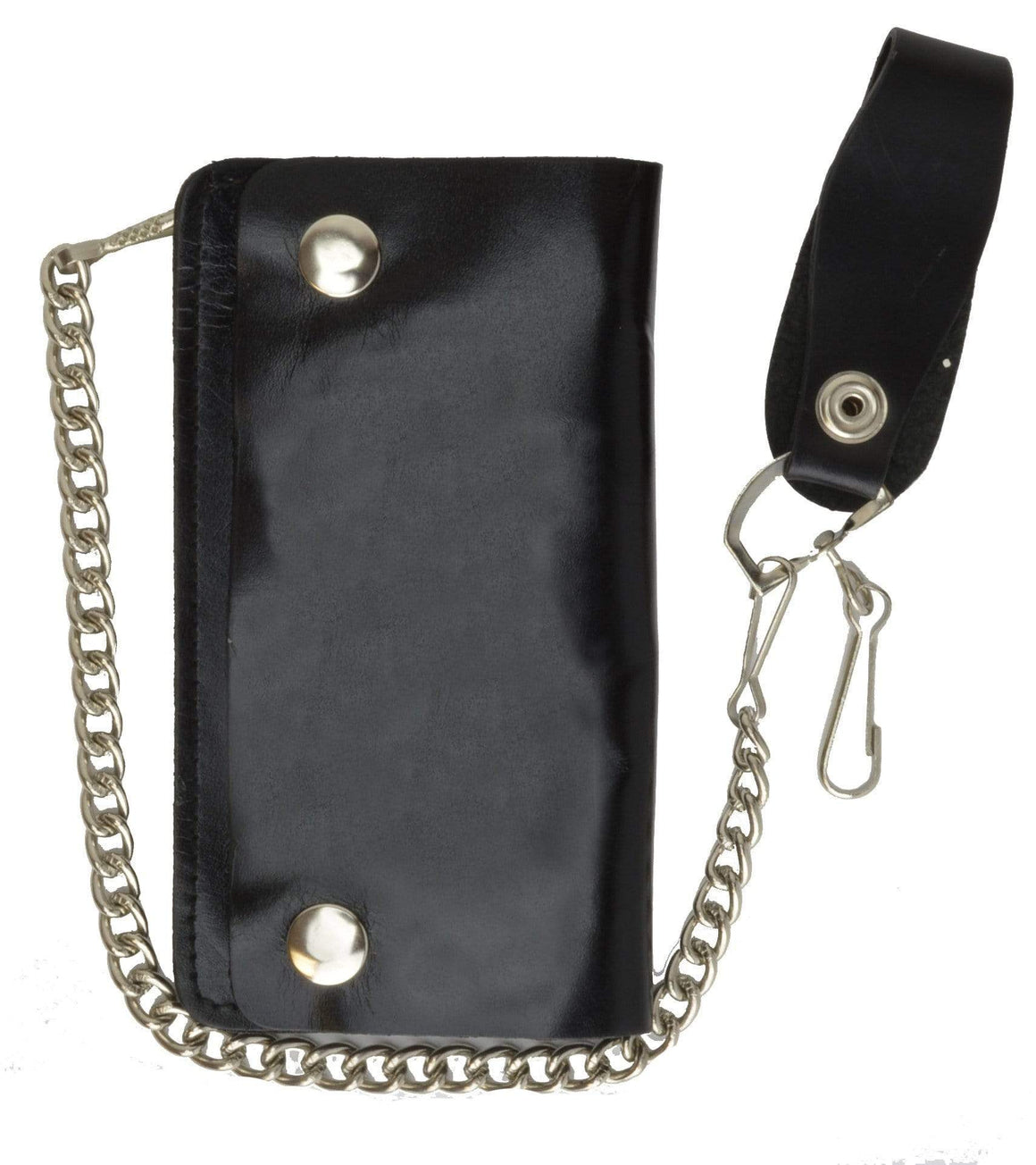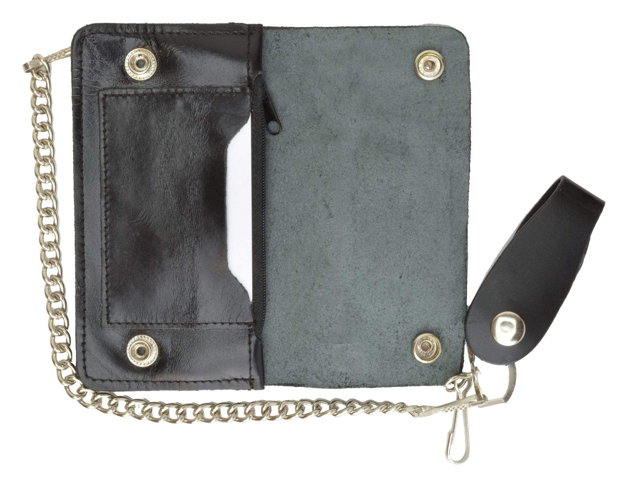 Material: Genuine LeatherOther features: Chain wallet attachment; Snapping enclosure; Credit card slotsMeasures: 5.75" X 3.5"...