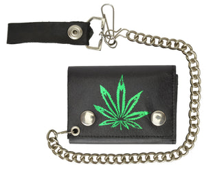 Material: Genuine Leather Tri-foldSize: 3"; x 4.25"; (Folded) approxCurrency Pocket: YesOther features: Marijuana Leaf Imprint;...