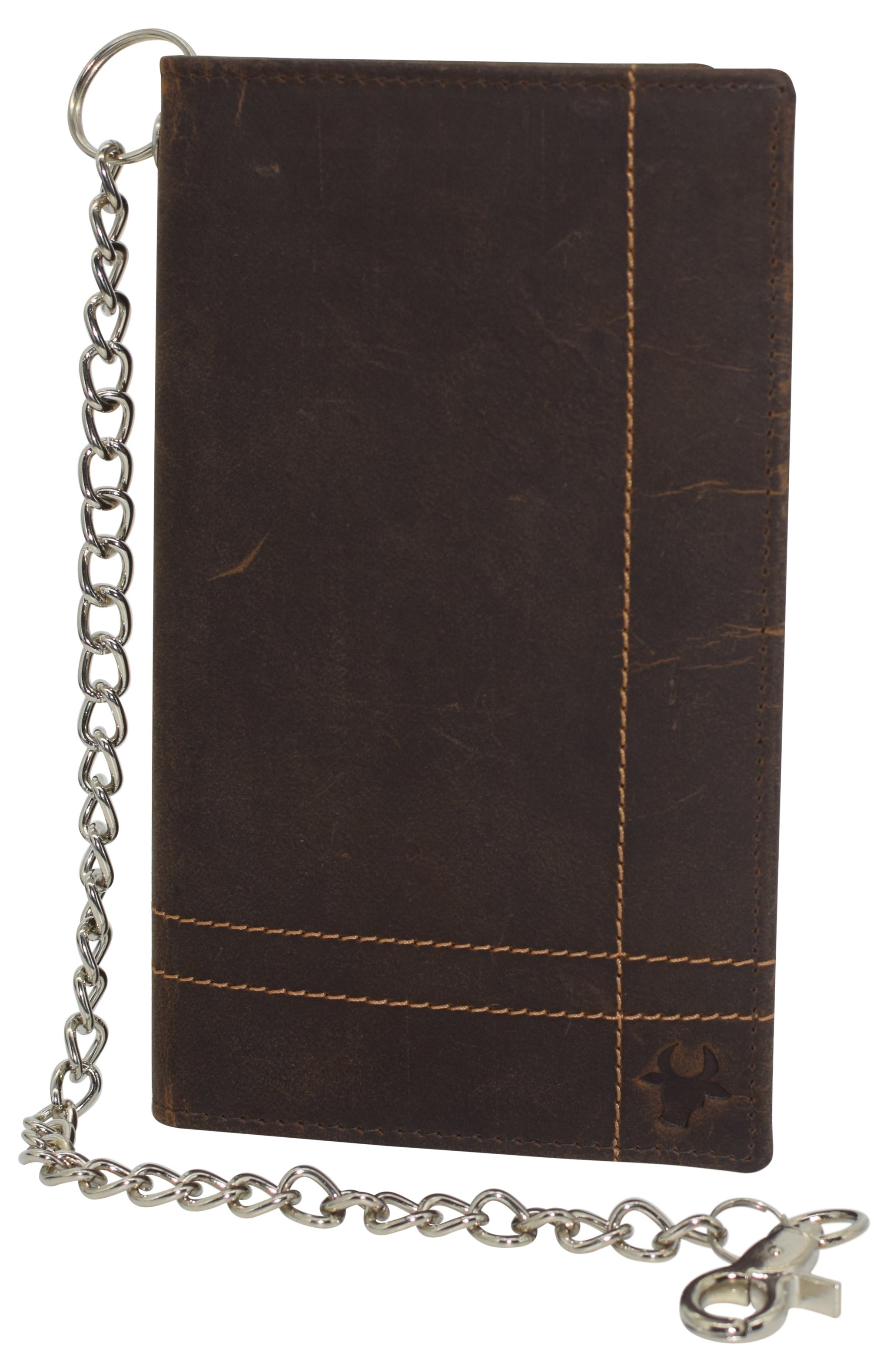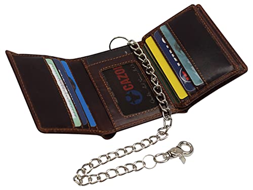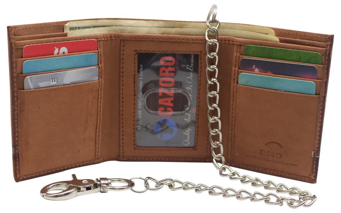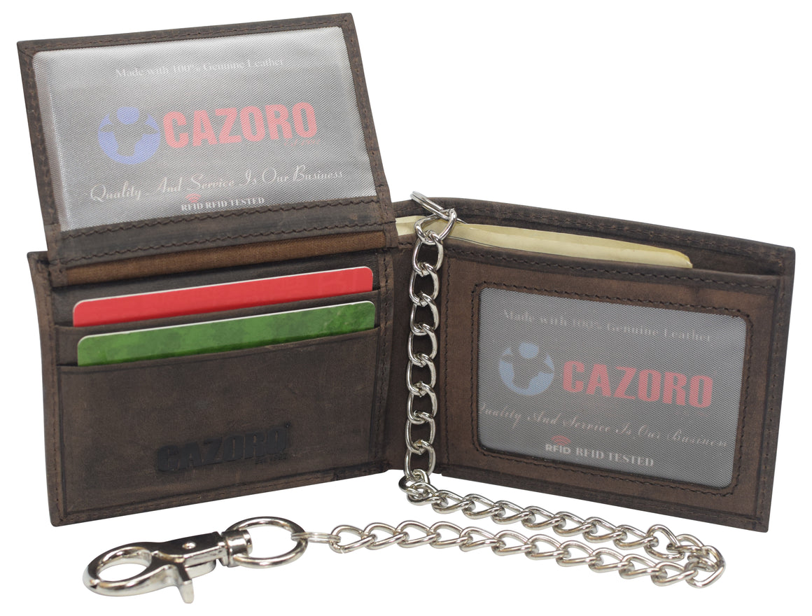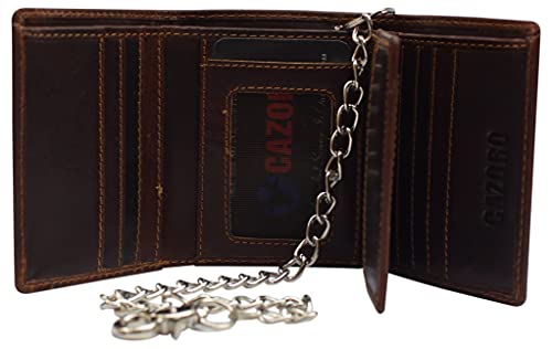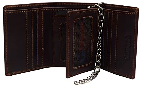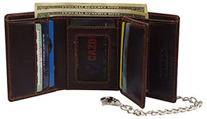 Product details Men's Crazy Horse Leather RFID Trifold Chain Wallet by Cazoro. This wallet is...