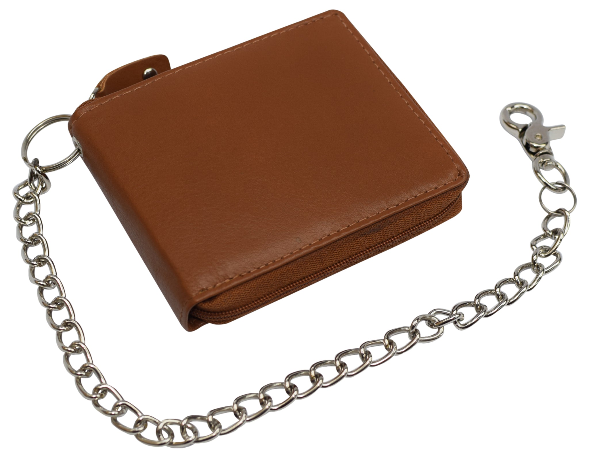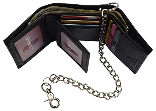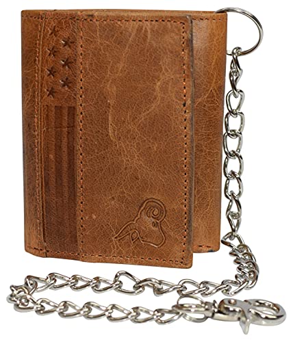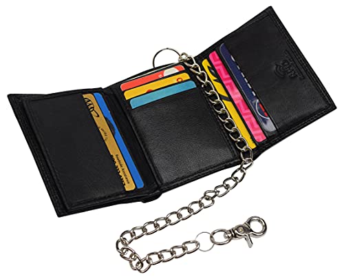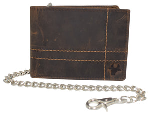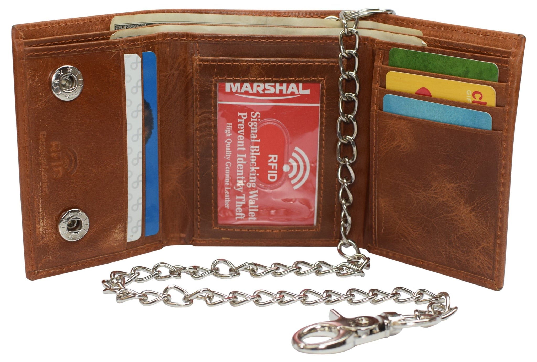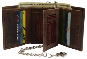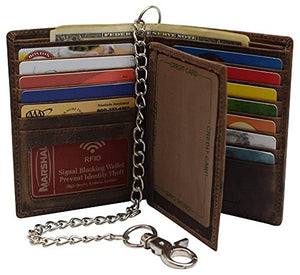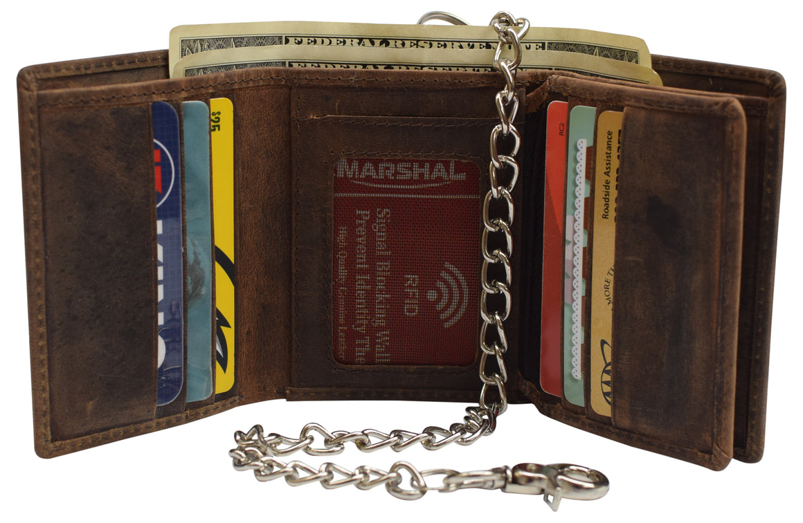 Product details Men's Crazy Horse Leather RFID Trifold Chain Wallet by Cazoro. This wallet is...
