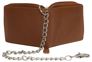 Brand: Cazoro Details: Color: Brown Material: Leather Style: Trifold With Steel Chain Full Size Currency Sections...