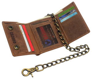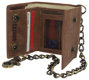 Category: biker wallet, Cazoro, Chain wallet, Genuine Leather, Mens wallet, RFID, trifold wallet