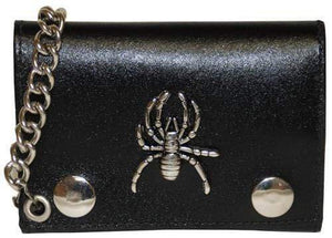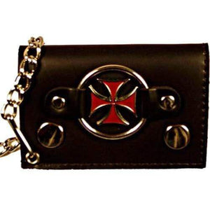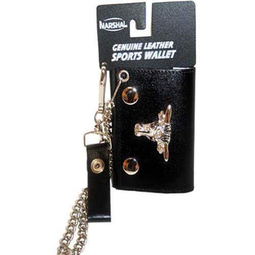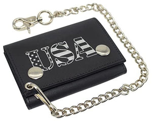 Material: Genuine Leather Tri-foldSize: 3"; x 4.25"; (Folded) approxCurrency Pocket: YesOther features:Snap button enclosure; Chain...