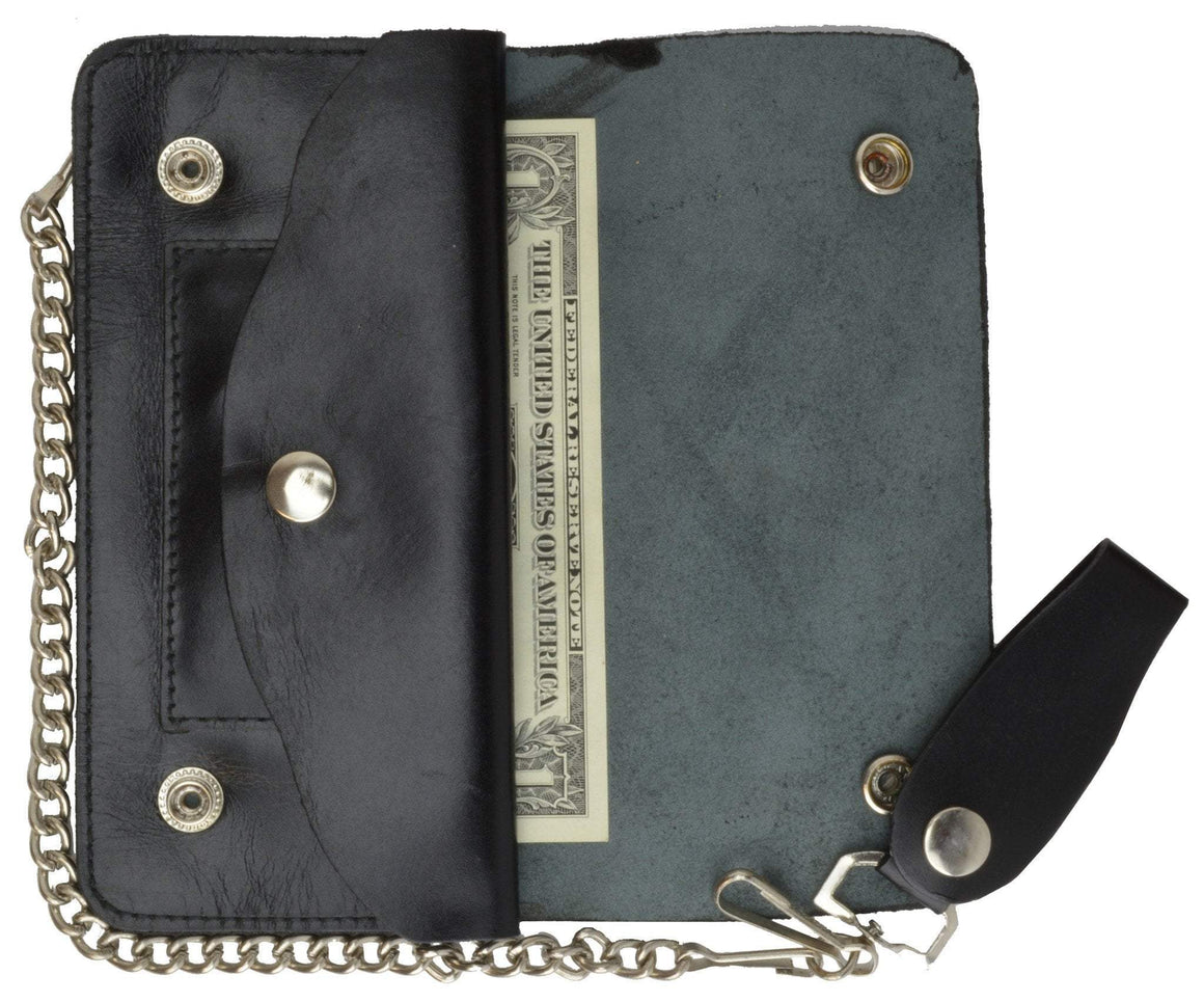Mens Wallet with chain. Crafted of fine cowhide leather. Features 3 slip pockets for currency....