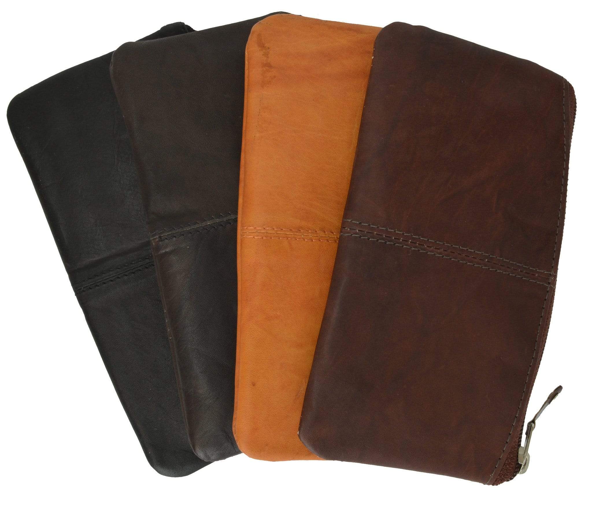 Material: Genuine Leather Size: 3.5Â x 3Â Other features: One zippered pocket; Two pull out...