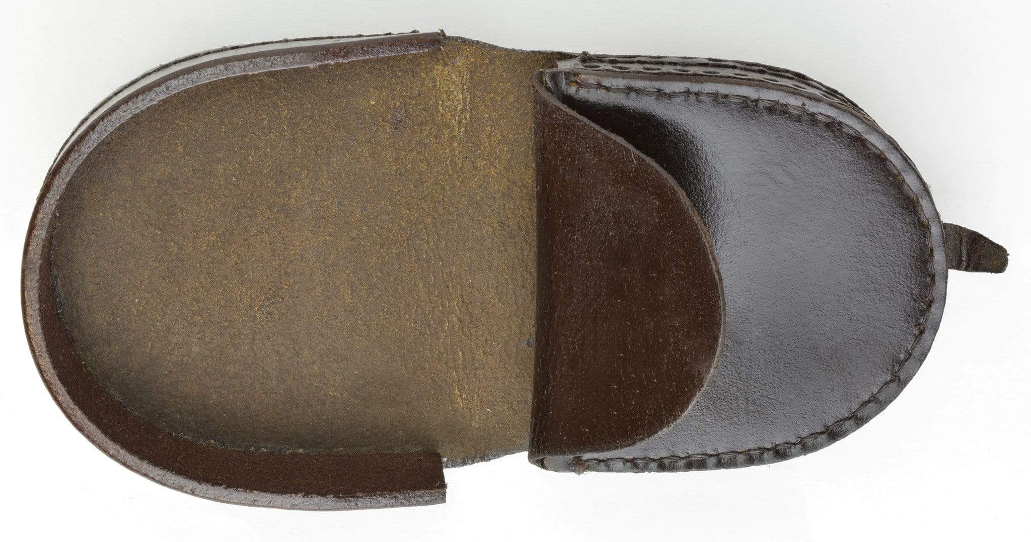 Material: Genuine LeatherSize: 4"; x 3" approxOther features: Twist snap enclosure