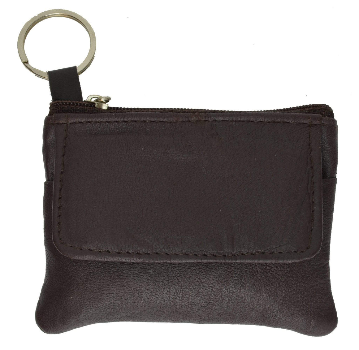 Change purse. Crafted of fine cowhide leather. Features a big middle zippered pocket for currency...