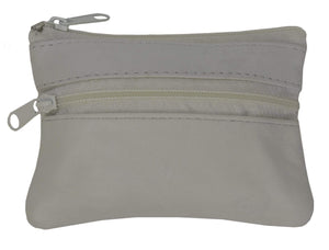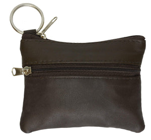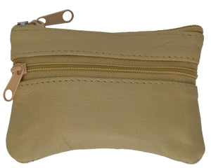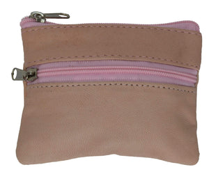 Leather change purse with zippered main pocket Size: 4" x 3" Other Features: Front pocket...