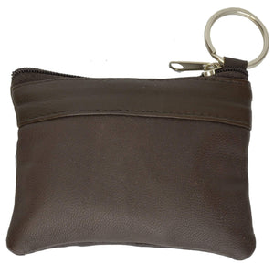 Leather change purse with zippered main pocketSize: 4" x 3" approxOther Features: Front pocket with...