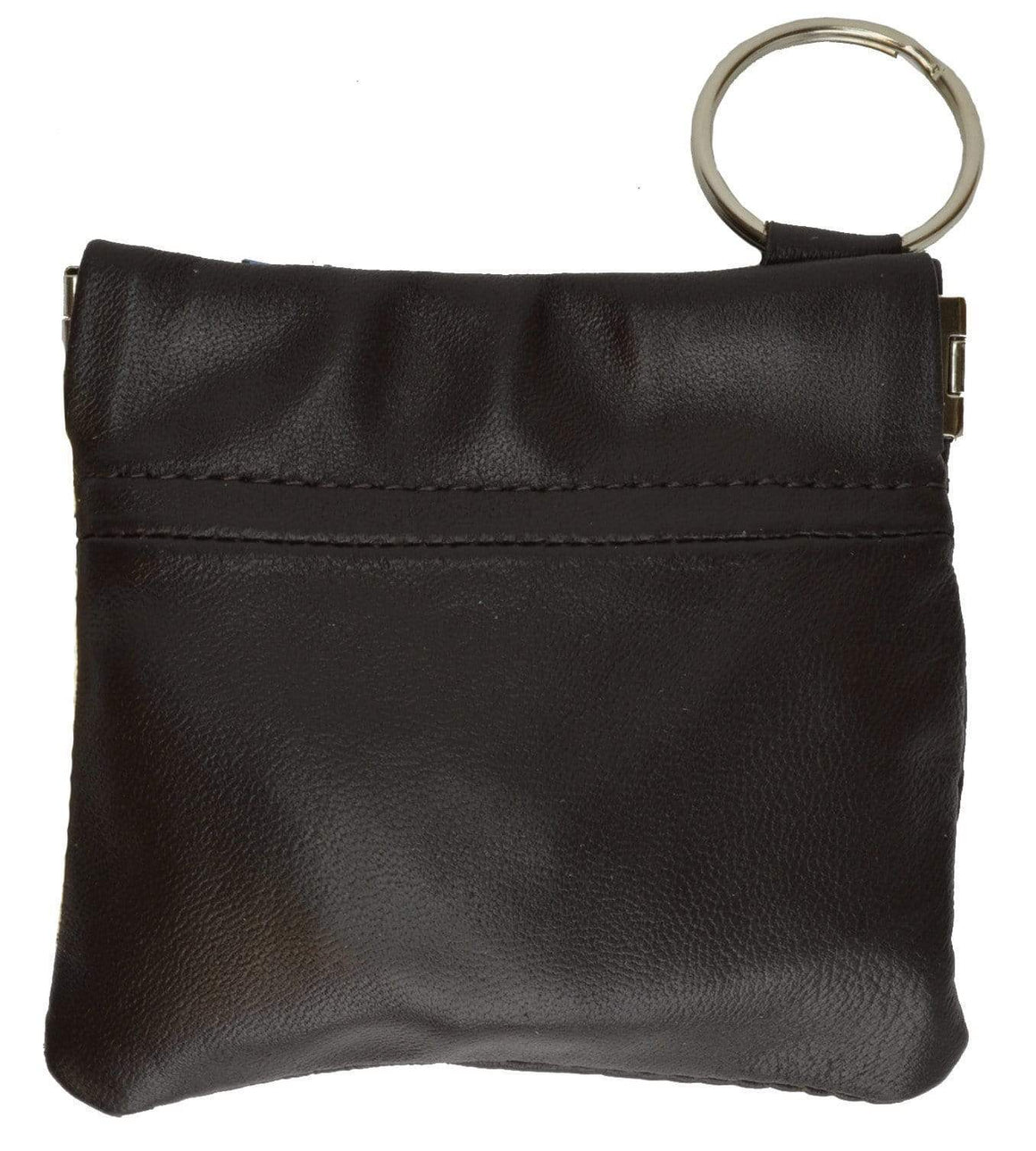 Material: Genuine Leather Change Purses Size: 3.25Â x 3.75Â Other features: Snap-close mechanism for security;...