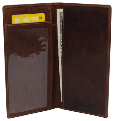 Material: Genuine LeatherCredit Card Slots: 7+ID Window: YesOther Features: Zippered Pocket, Checkbook HolderMeasures:6.8" X 3.65"...