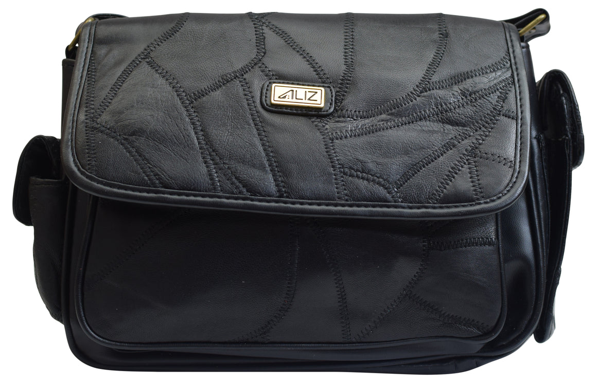 Brand: AlizDetails: Women's Genuine Leather Black Shoulder bag purse 2 Front Compartments ( Main Compartment...