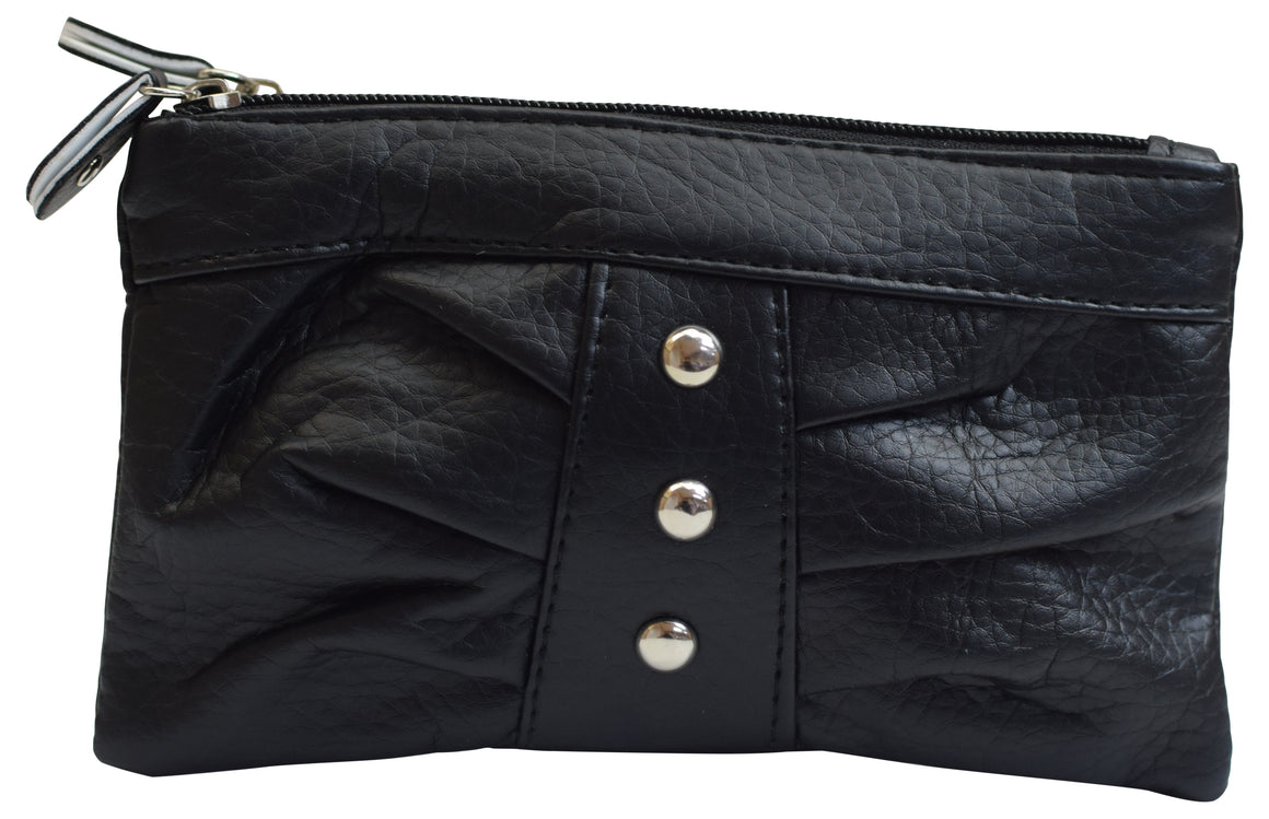 Material: Genuine LeatherSize: 5"; x 7" approxOther features: Two zippered pockets; One snap close pocketOur...