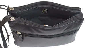 Material: Genuine LeatherSize: 5"; x 7" approxOther features: Two zippered pockets; One snap close pocketOur...