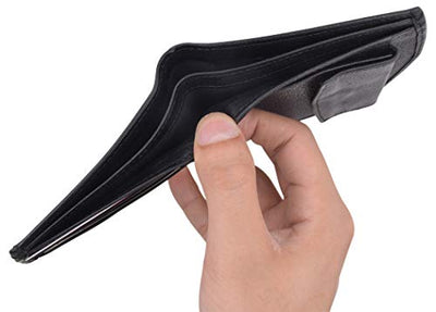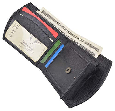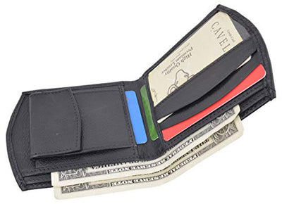 Men's genuine leather bi-fold wallet 9 credit card slots, currency compartment with a divider and a...