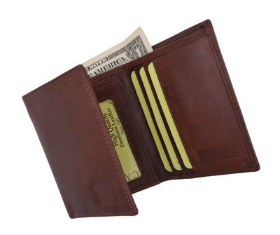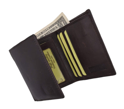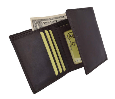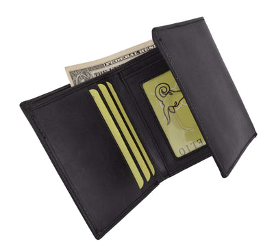 Material: Genuine Leather Tri-fold Credit Card Slots: 8+ I.D. Window: Yes Currency Pocket: Divider; Hideaway...