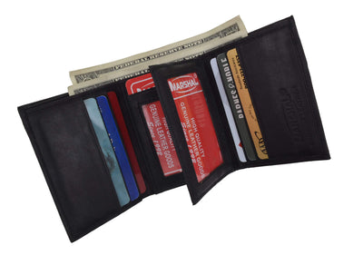 Men's genuine leather bi-fold wallet 9 credit card slots, currency compartment with a divider and a...