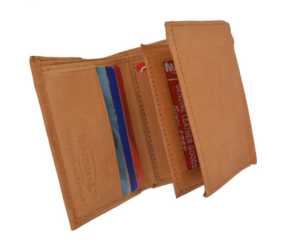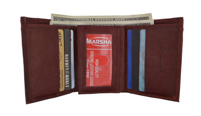 Material: Genuine Leather Tri-fold Credit Card Slots: 8+ I.D. Window: Yes Currency Pocket: Divider; Hideaway...