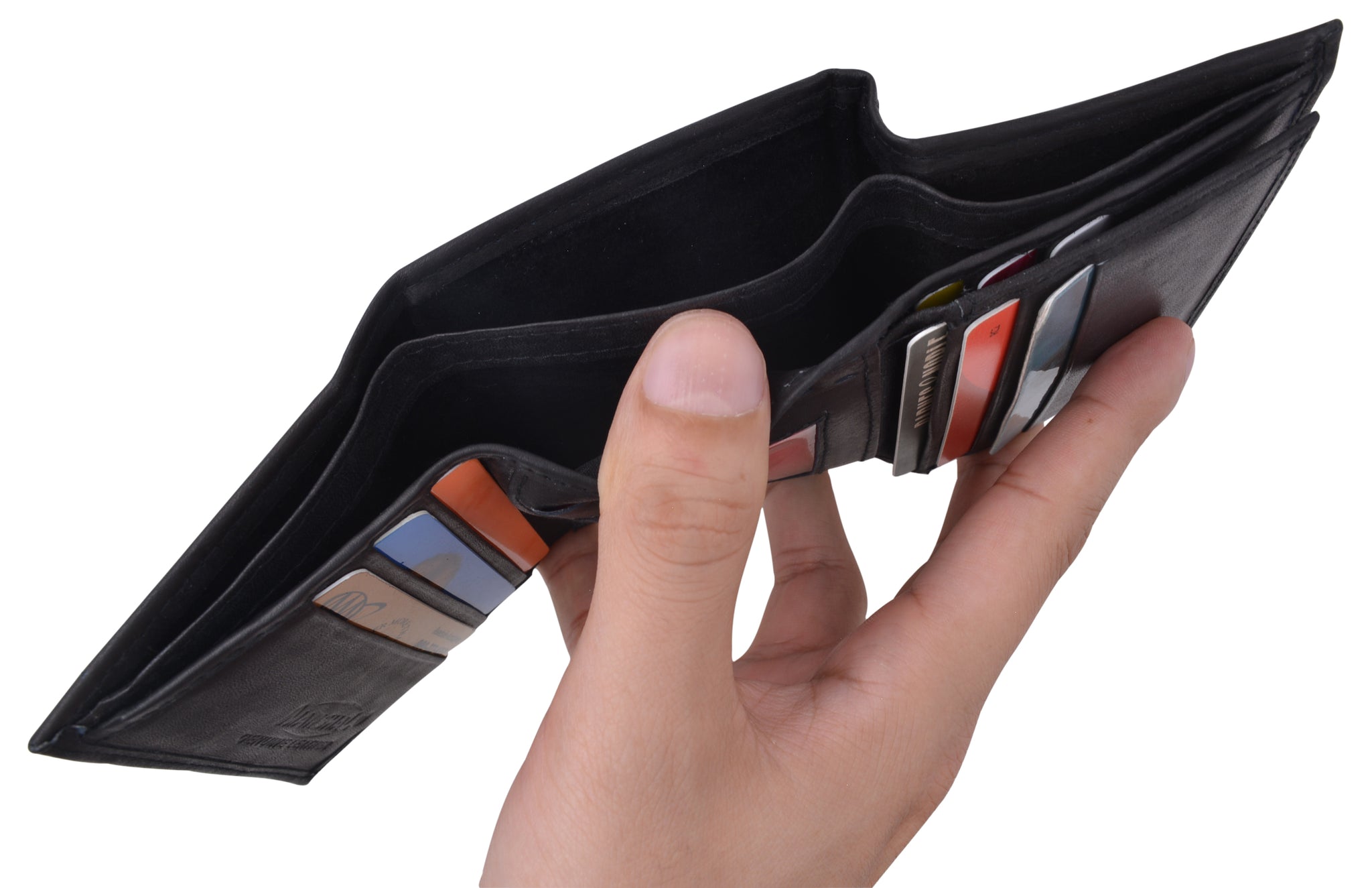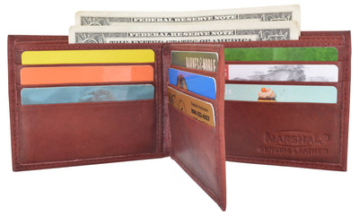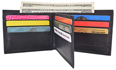 Men's genuine leather bi-fold wallet 9 credit card slots, currency compartment with a divider and a...