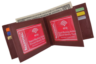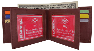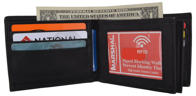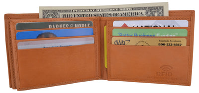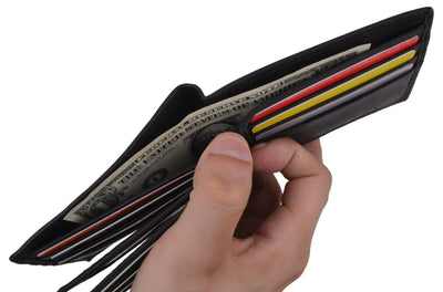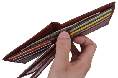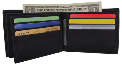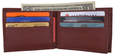 Men's genuine leather bi-fold wallet 9 credit card slots, currency compartment with a divider and a...