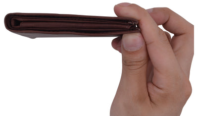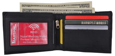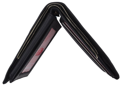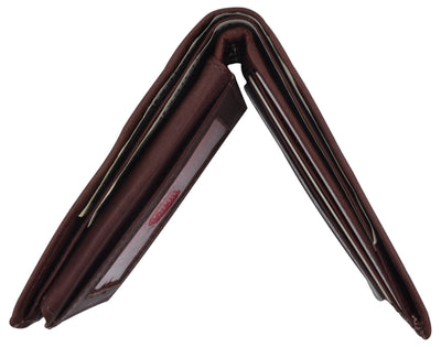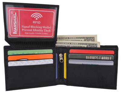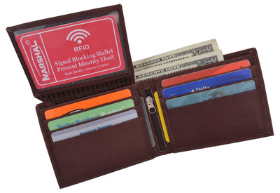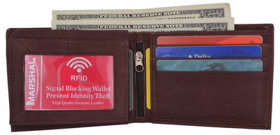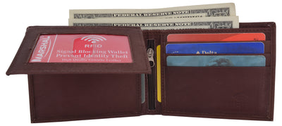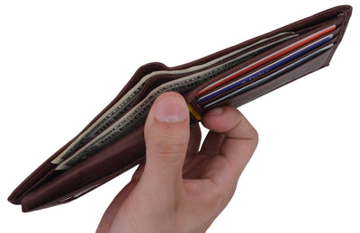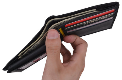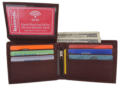 Men's genuine leather bi-fold wallet 9 credit card slots, currency compartment with a divider and a...