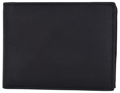 Men's wallet, crafted of fine lamb skin leather, features 6 credit cards slots, a Id...