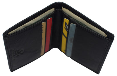 Men's wallet, crafted of fine lamb skin leather, features 6 credit cards slots, a Id...