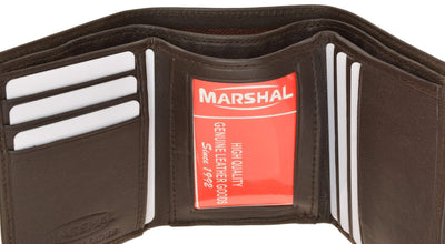 Material: Genuine Leather Tri-fold Credit Card Slots: 8+ I.D. Window: Yes Currency Pocket: Divider; Hideaway...