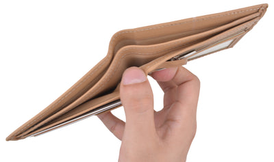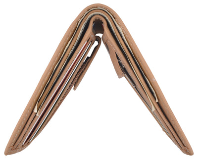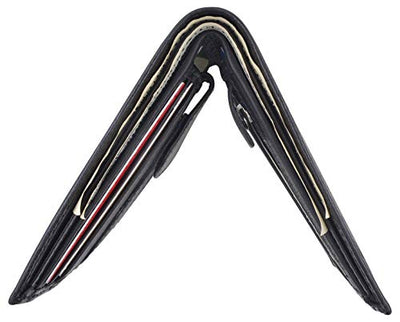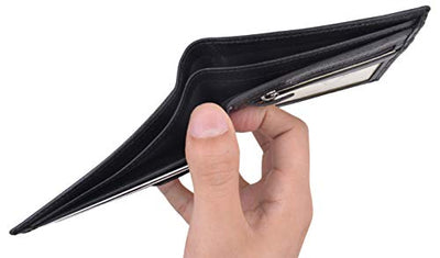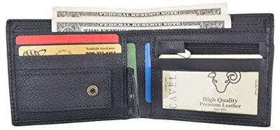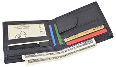 Men's genuine leather bi-fold wallet 9 credit card slots, currency compartment with a divider and a...