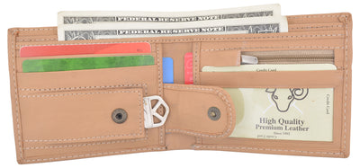 Men's wallet, crafted of fine lamb skin leather, features 6 credit cards slots, a Id...