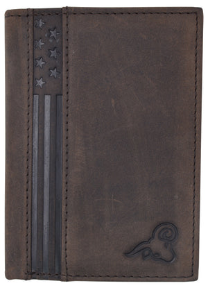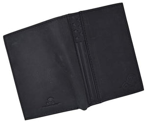 Material: Genuine Leather Tri-foldCredit Card Slots: 6+I.D. Window: Yes (Internal)Currency Pocket: Divider; Hideaway Zippered PocketOther...