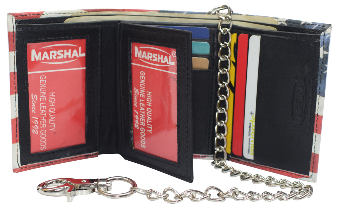 Material: Genuine Leather Biker's Wallet with Chain Inside Details: Card and ID slots. Money Bills...