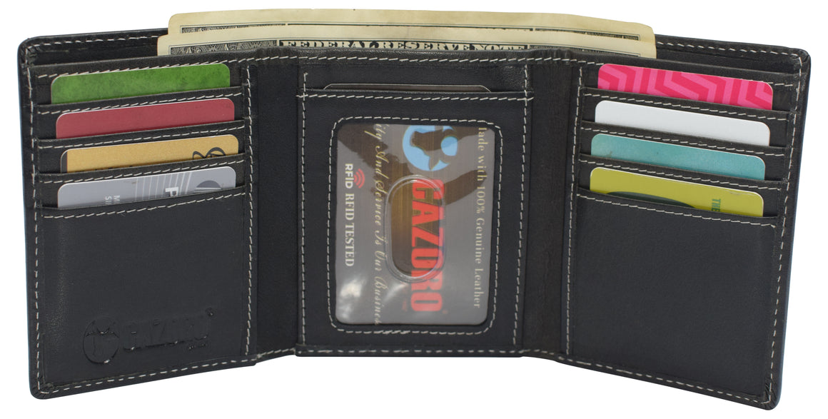 Product details Cazoro Men's RFID Wallet in Genuine Leather Trifold ID Window has RFID blocking...