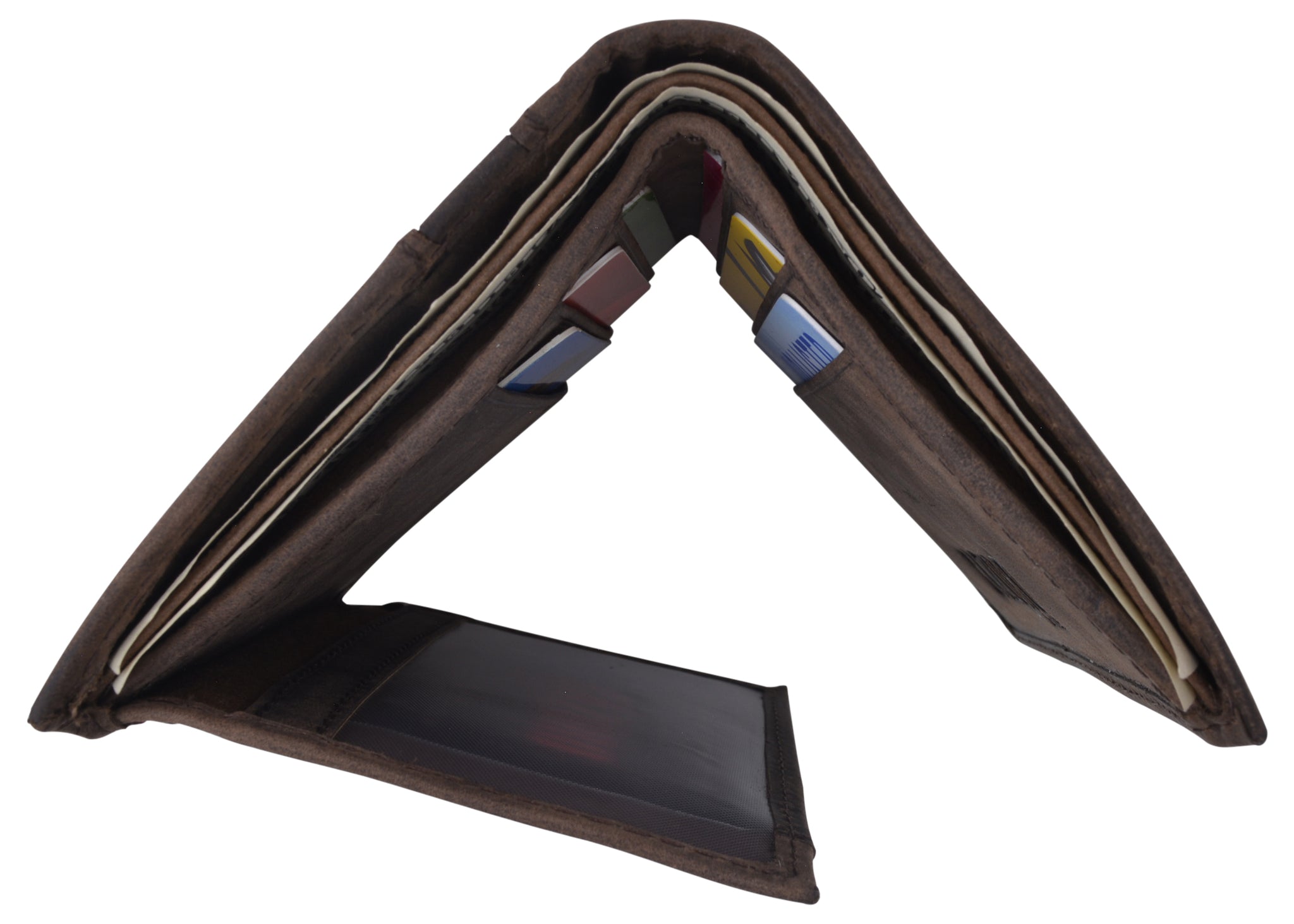 Material: Genuine Leather Tri-foldCredit Card Slots: 10+I.D. Window: Yes (Flip-Up)Currency Pocket: Flip Up Pocket (Behind...
