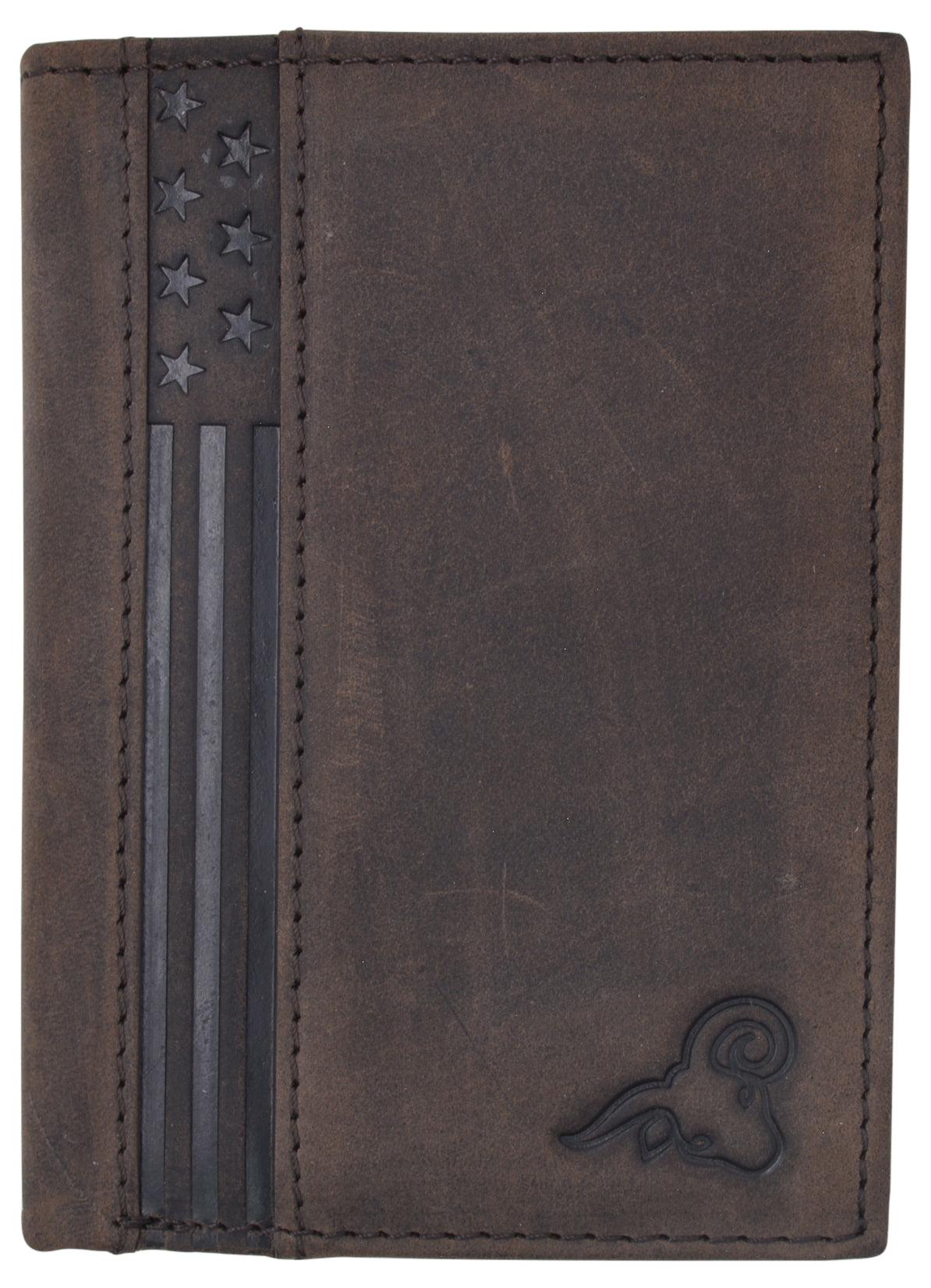 Material: Genuine Leather Tri-foldCredit Card Slots: 5+I.D. Window: Yes (Flip-Up)Currency Pocket: Divider; Hideaway Zippered Pocket