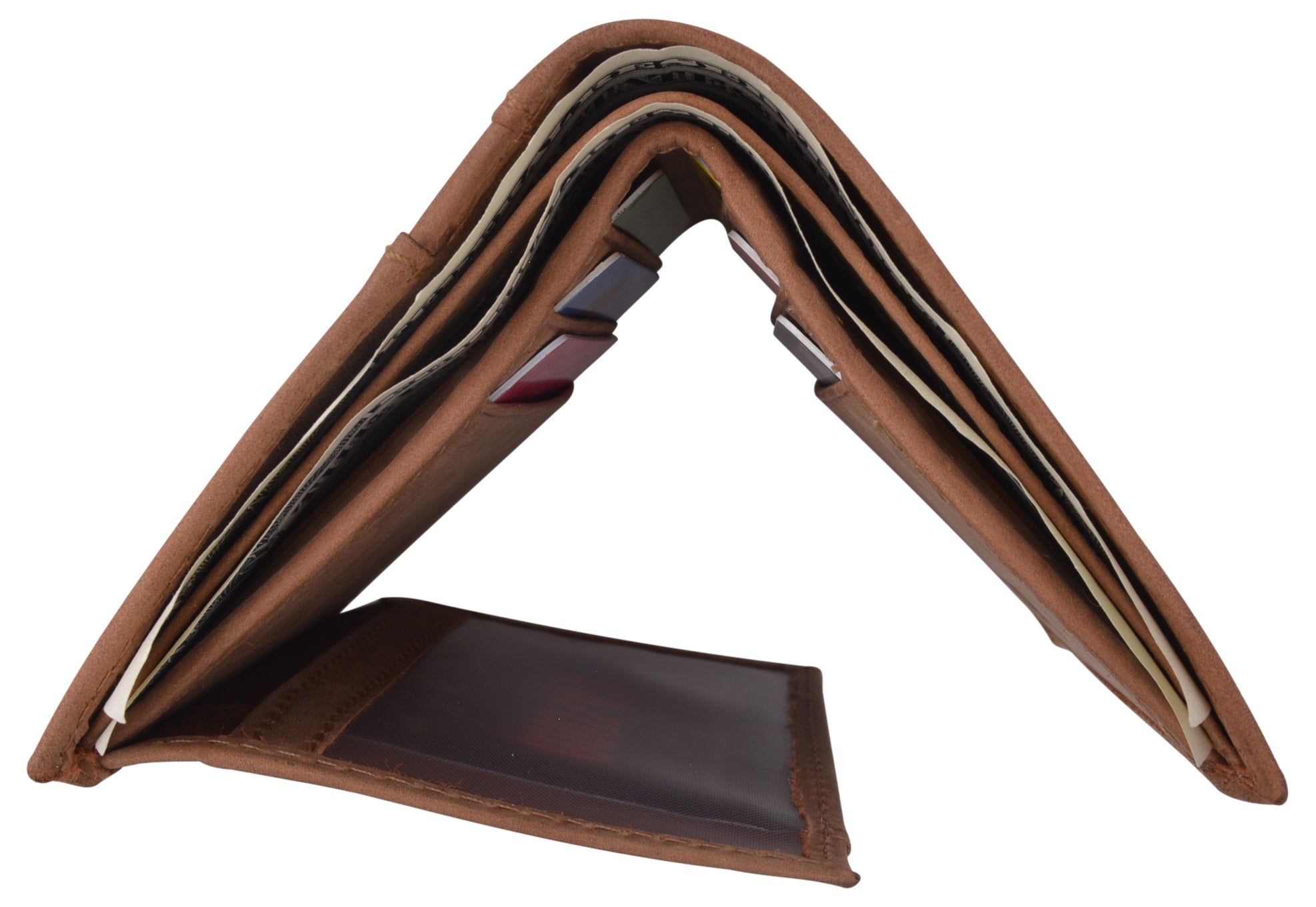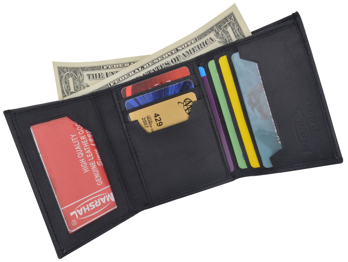 Brand: MarshalFeatures: Genuine Leather Men's Wallets BIFOLD: 11 Credit Card Slots, ID Window, 4 Page...