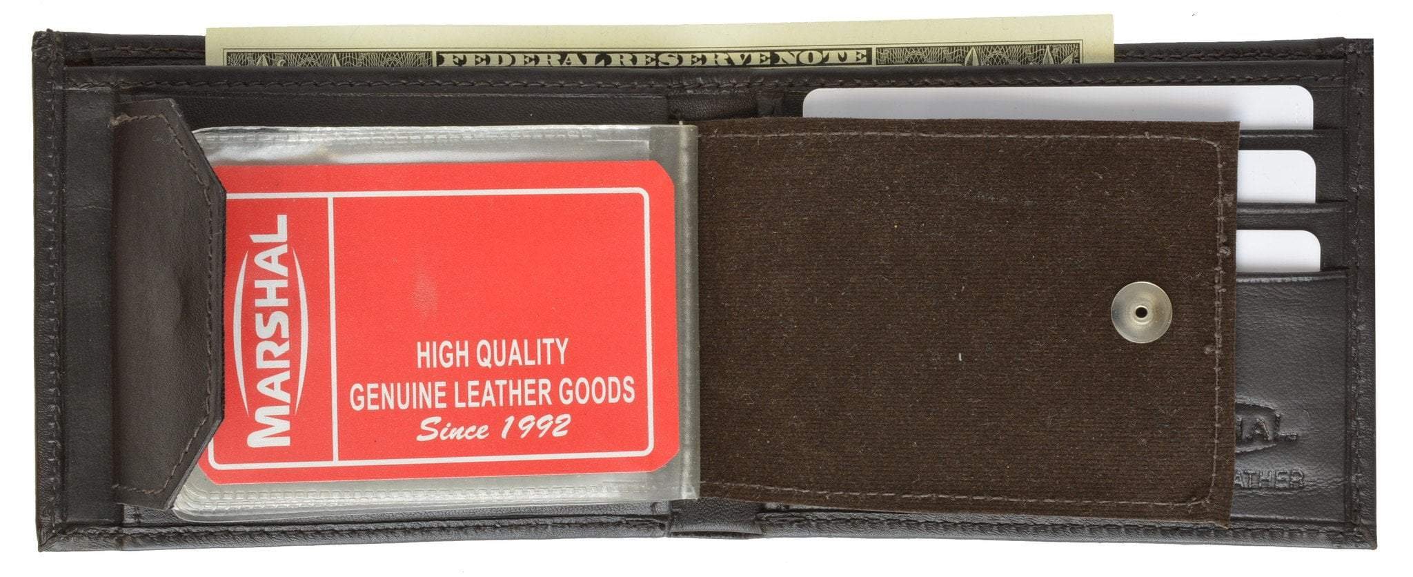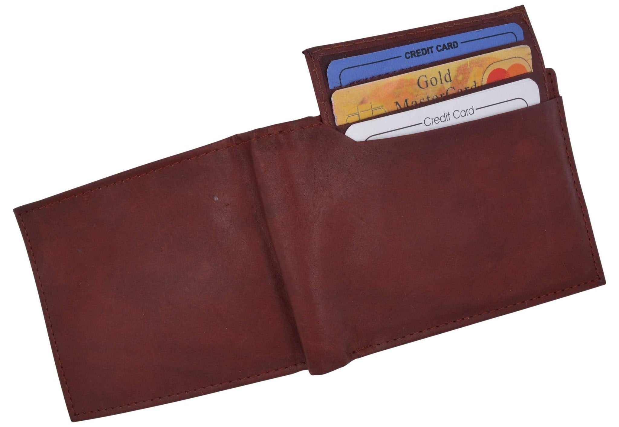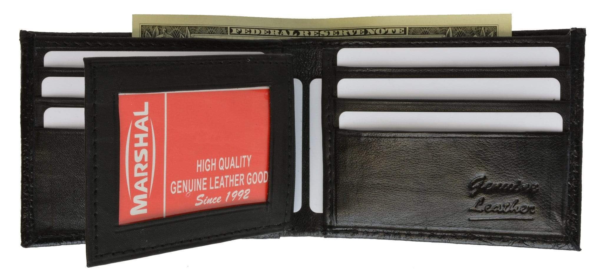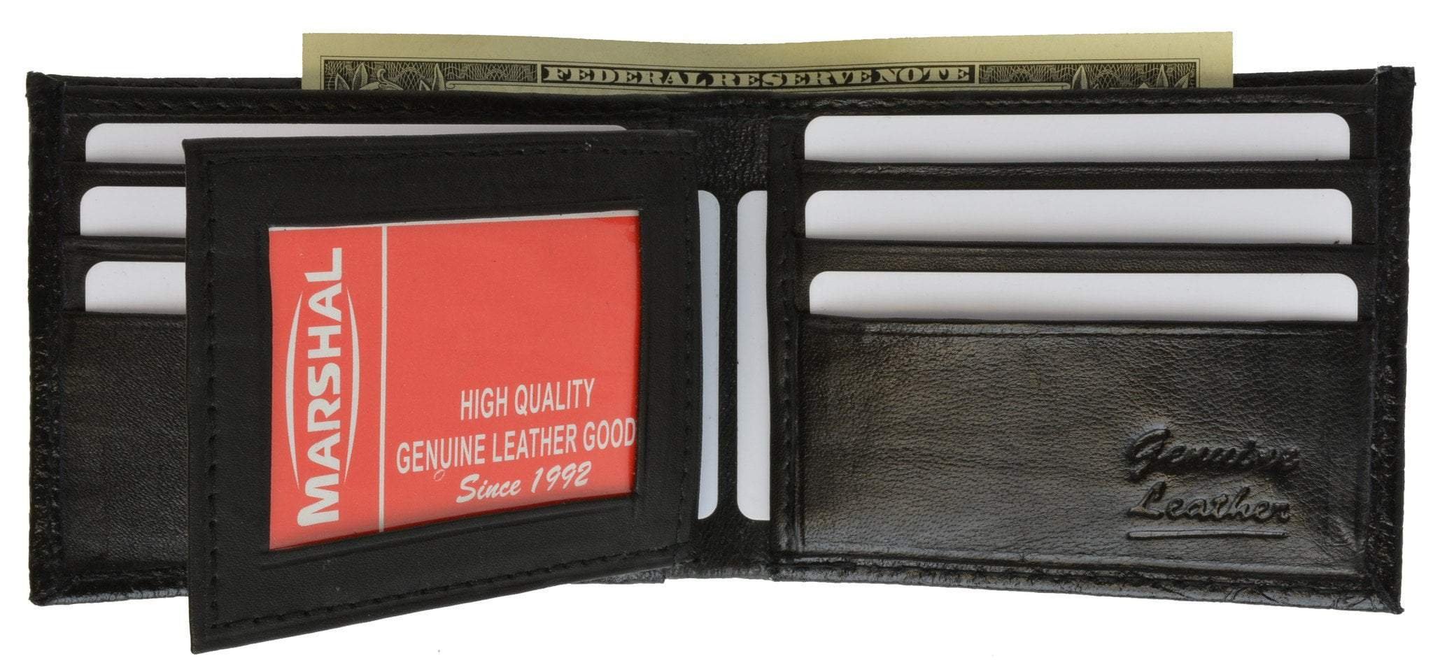 Material: Genuine Leather Bi-foldCredit Card Slots: 6+I.D. Window: Yes (Internal; covered by flap with snap...